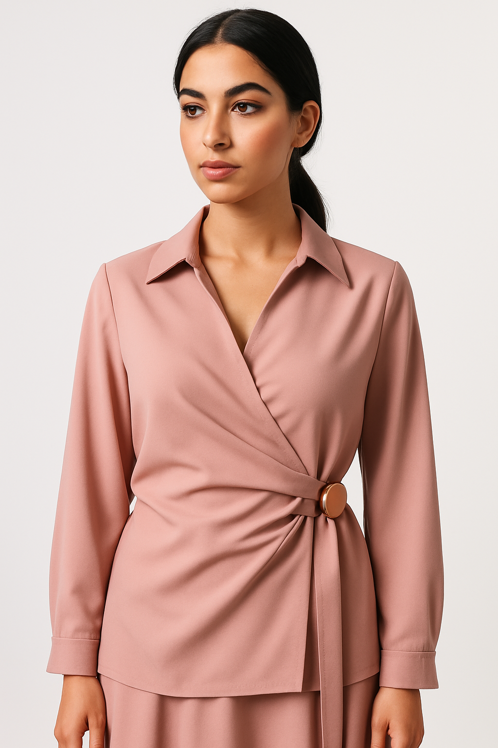 بلوزة بستايل لف مع تفصيلة إبزيم