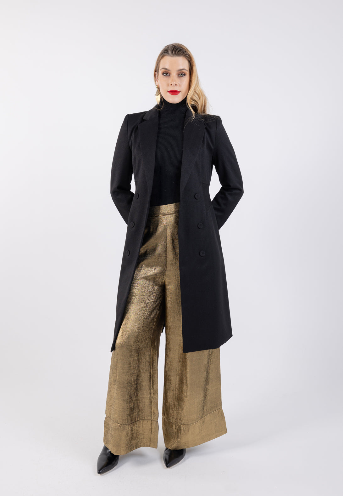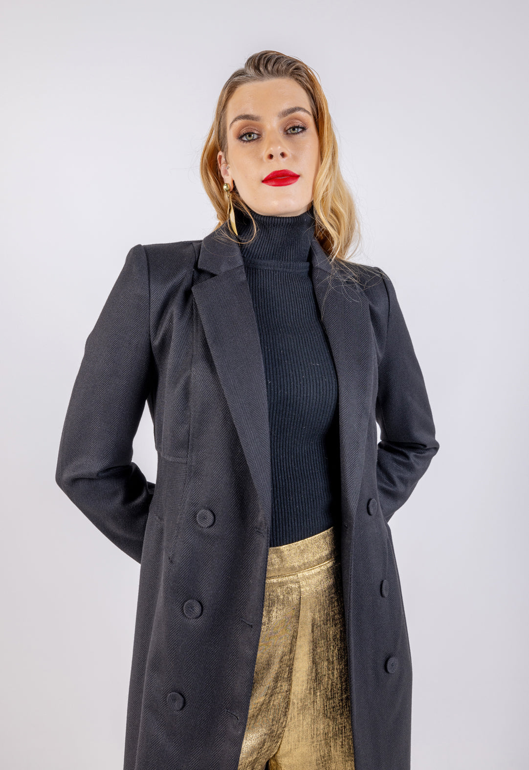 ارتقِ بخزانة ملابسك مع هذا المعطف الكلاسيكي ذو الأزرار المزدوجة، المصمم ليضفي الأناقة والرقي على إطلالتك اليومية. يتميز بتصميم محدد الخصر ليمنحك مظهراً أنيقاً وجذاباً، مما يجعله مثالياً للمناسبات الرسمية وغير الرسمية. يوفر التصميم متوسط الطول الدفء والراحة مع الحفاظ على المظهر العصري الأنيق.