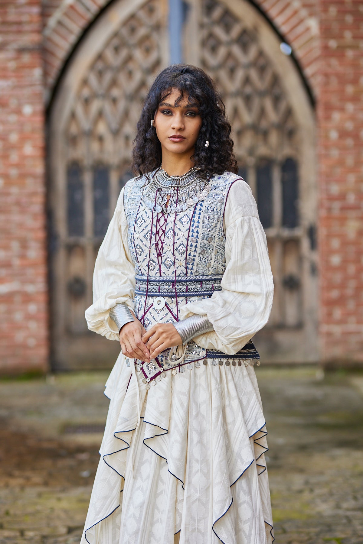 ✔️ الصدرية: مصنوعة يدوياً مع تطريز فاخر وزخارف خرزية (تباع بشكل منفصل)
