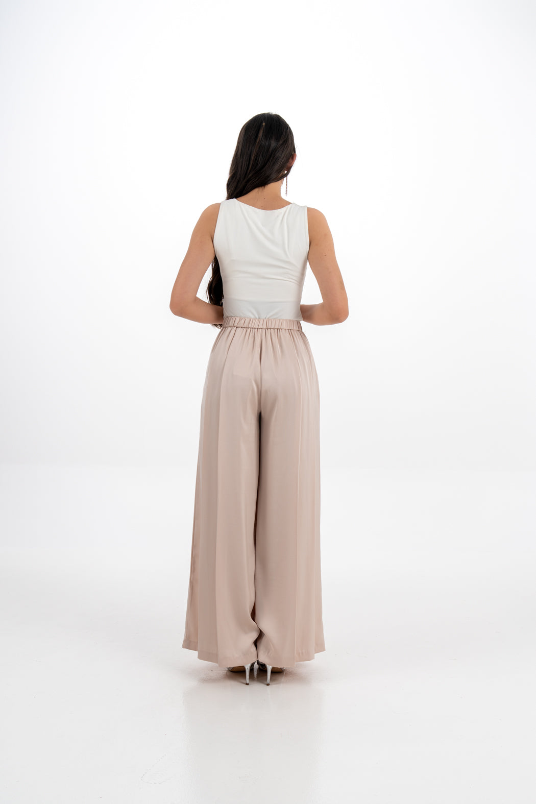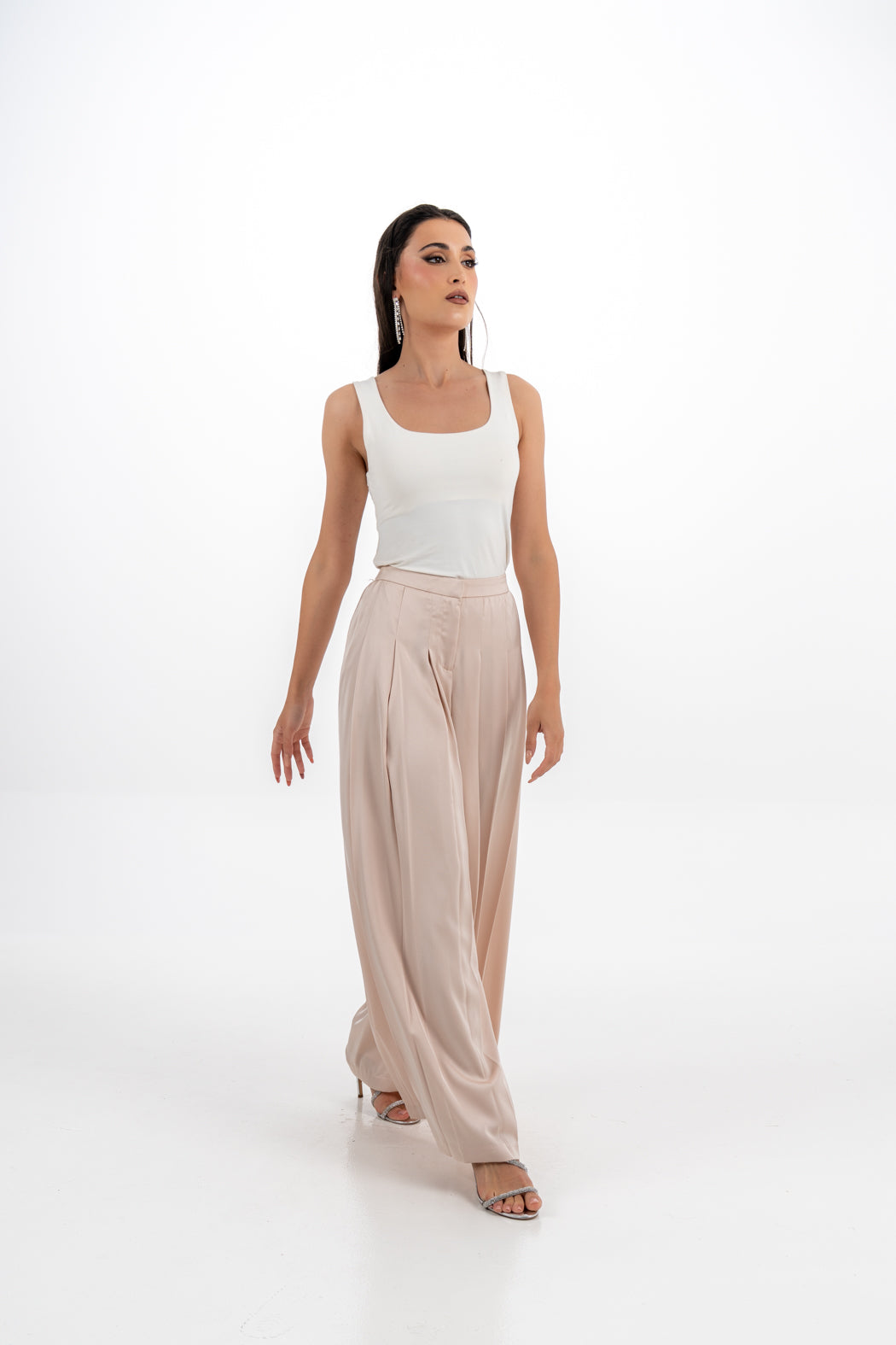 ارتقي بإطلالتك مع هذا البنطال الواسع المصمم بقصّة هيكلية وثنيات أنيقة في الأمام لمظهر أنيق ومصقول. يمنحك الخصر العالي مظهراً أطول، بينما يوفر الجزء المطاطي الخلفي راحة طوال اليوم. يتميز بتبطين كامل ليمنحك دعماً إضافياً ومظهراً ناعماً، ويمكن تنسيقه بكل سهولة مع التوب (2505010) لإطلالة متناغمة وعصرية.