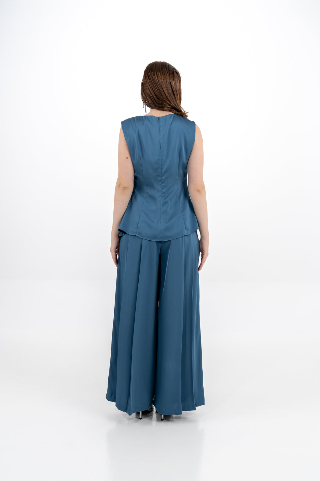 ارتقي بإطلالتك مع هذا البنطال الواسع المصمم بقصّة هيكلية وثنيات أنيقة في الأمام لمظهر أنيق ومصقول. يمنحك الخصر العالي مظهراً أطول، بينما يوفر الجزء المطاطي الخلفي راحة طوال اليوم. يتميز بتبطين كامل ليمنحك دعماً إضافياً ومظهراً ناعماً، ويمكن تنسيقه بكل سهولة مع التوب (2505010) لإطلالة متناغمة وعصرية.