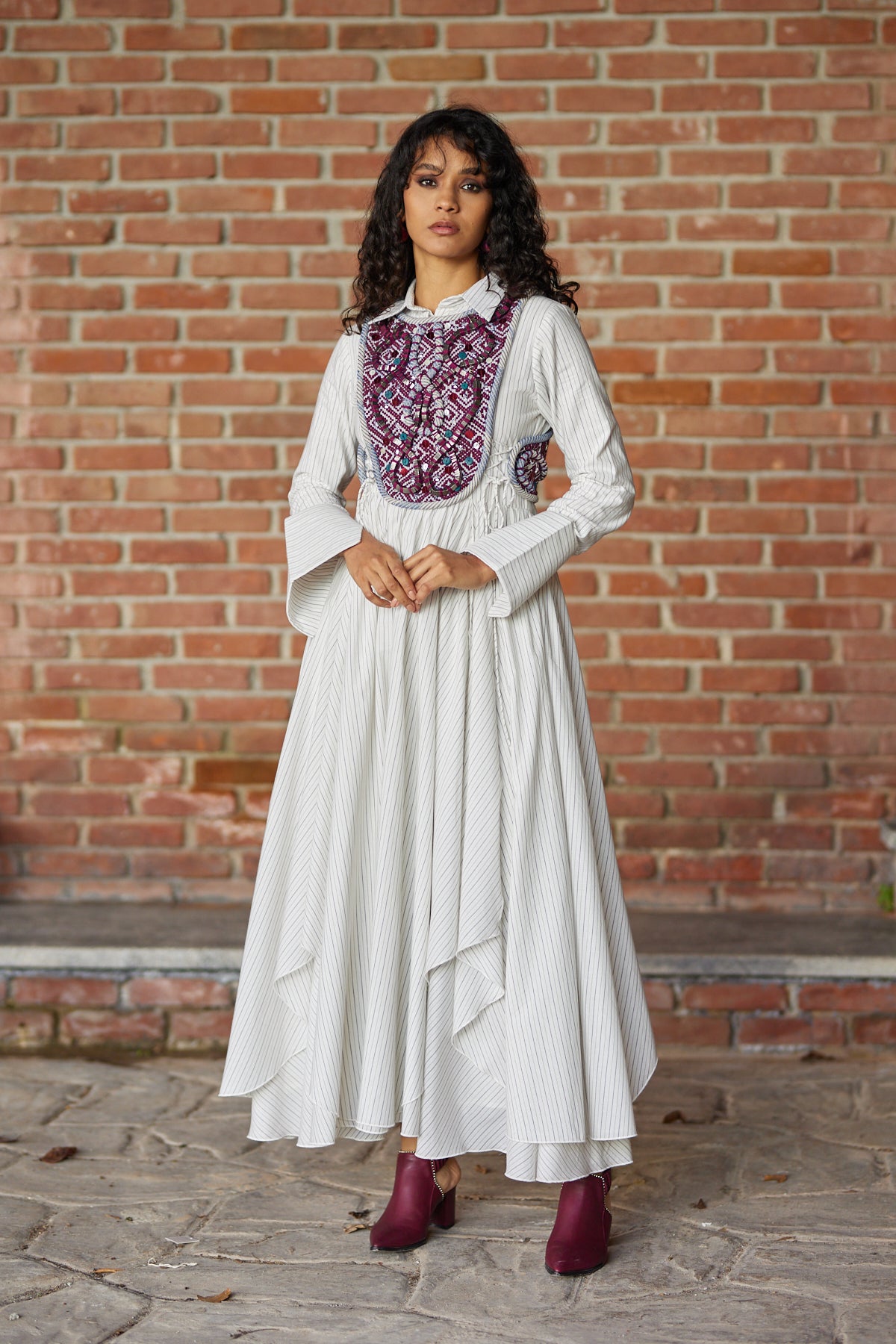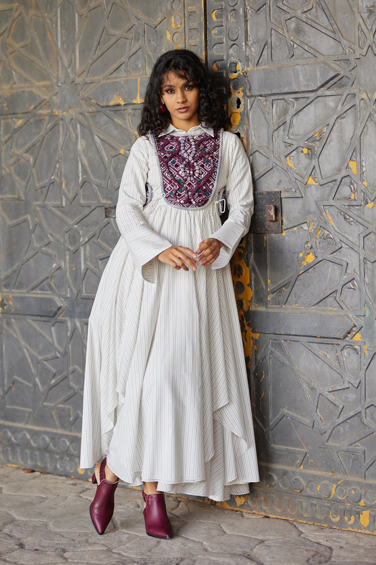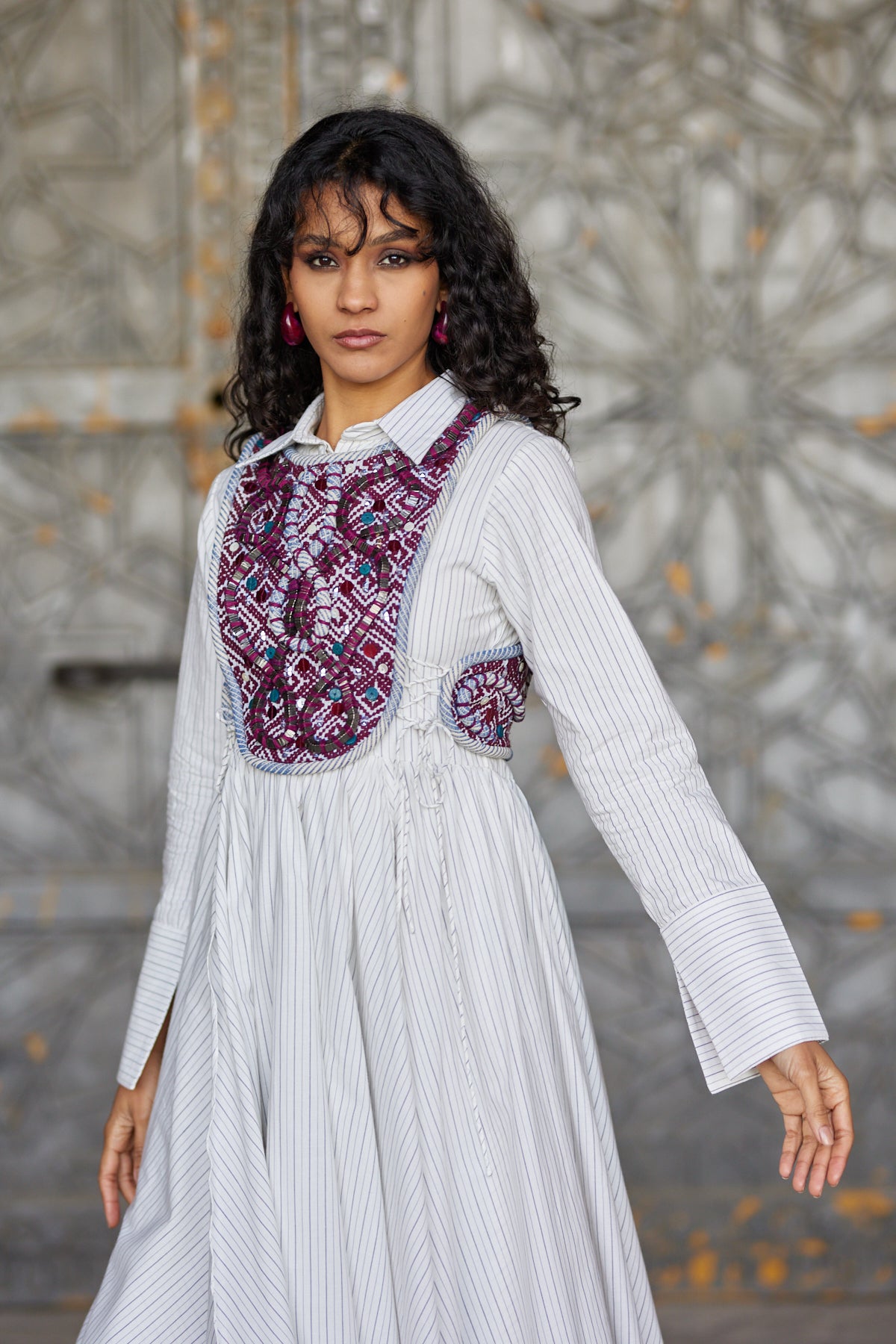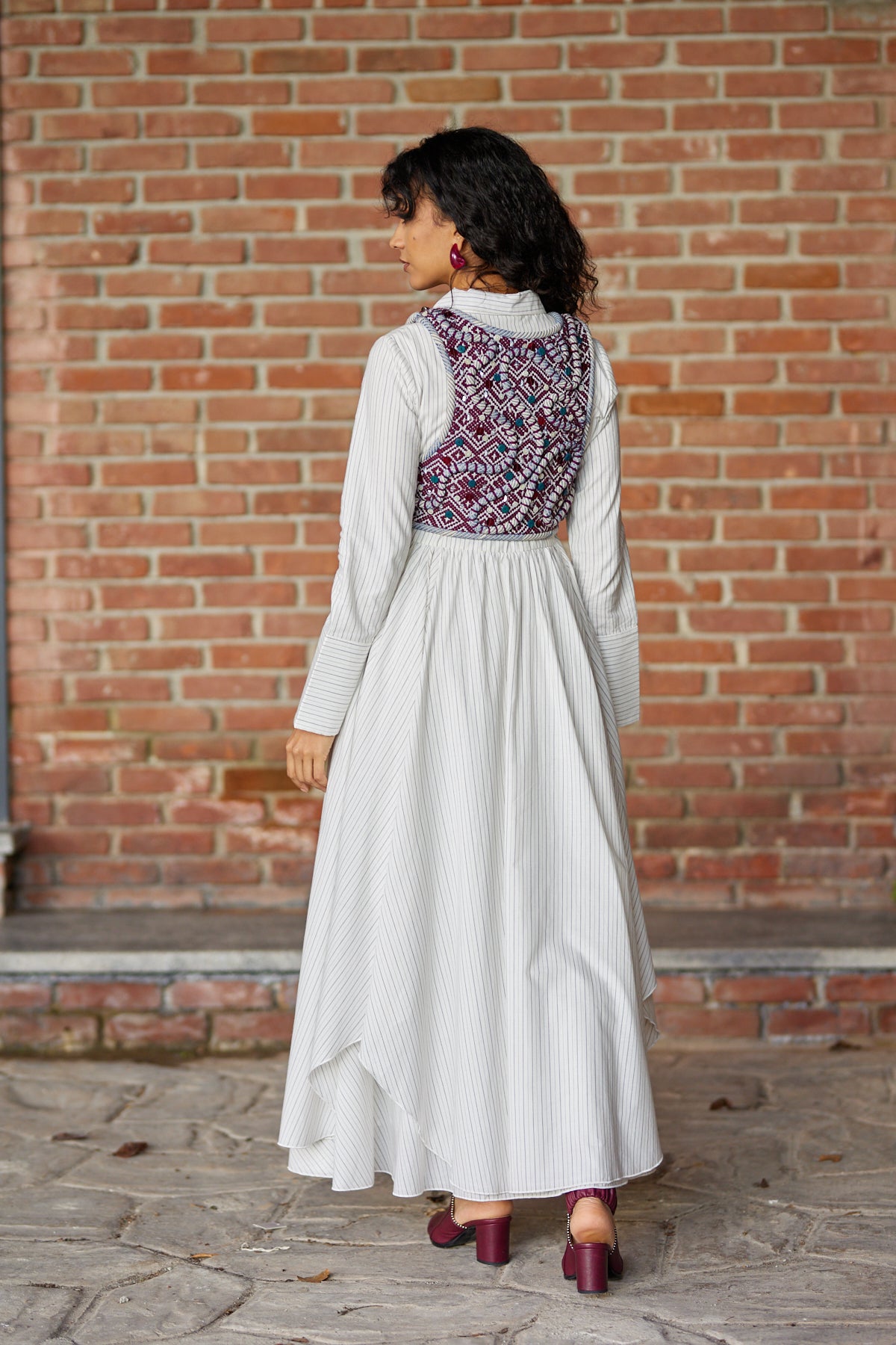 فستان ماكسي مخطط أنيق – تصميم أبرار المبارك (لا يشمل السترة)