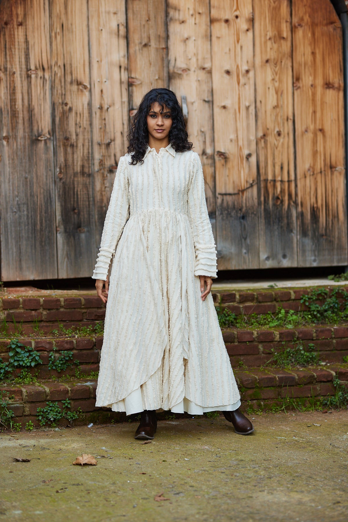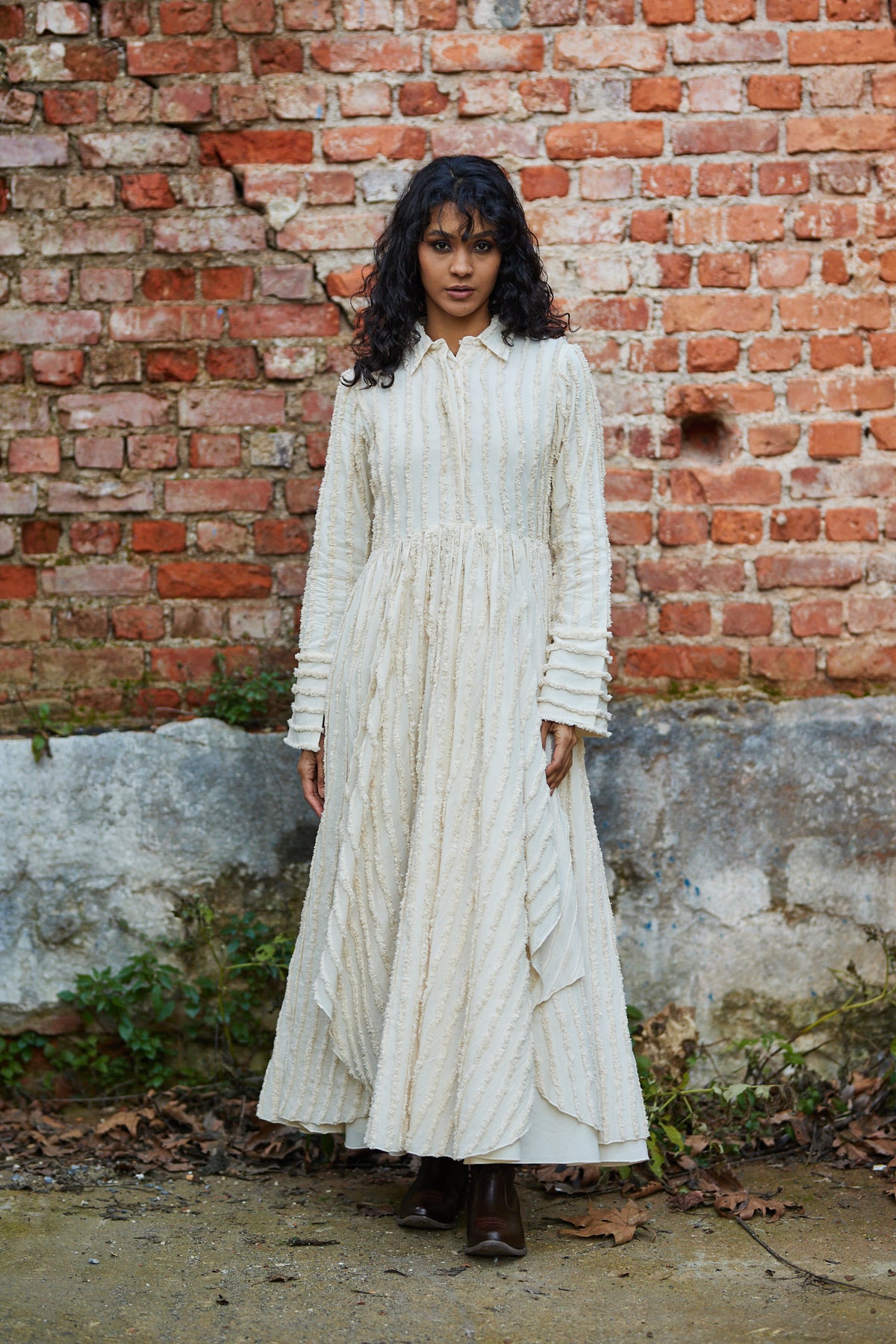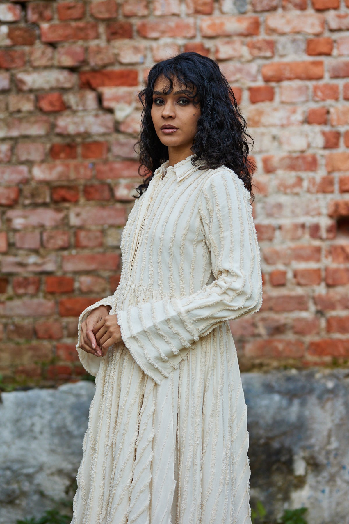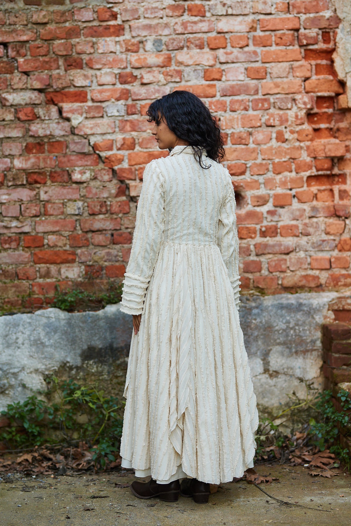 تألقي بإطلالة فاخرة مع هذا الفستان الماكسي الفخم ذو النقشات البارزة، بتصميم حصري من أبرار المبارك. يجمع هذا الفستان بين الأناقة والرقي، حيث يتميز بياقة كلاسيكية وأزرار إغلاق حتى الخصر، مما يضفي لمسة من التميز والجاذبية. تضيف التفاصيل المخططة المطرزة والمهدبة ملمسًا فريدًا، بينما يعزز التصميم الواسع ذو الحواف المتدرجة من حركة الفستان بطريقة أنيقة وانسيابية.