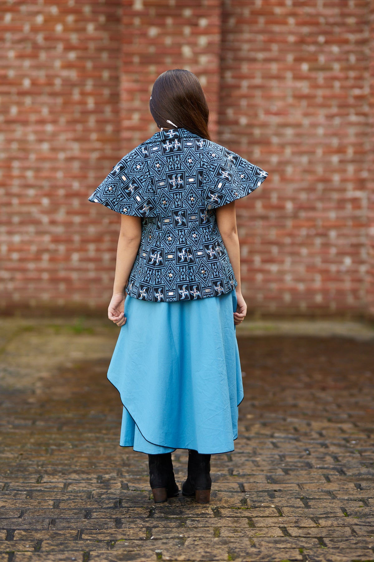 ✔️ السترة: تتميز بتطريز هندسي فاخر وأكمام بتصميم كاب تضفي لمسة فريدة من الحجم والأناقة.
