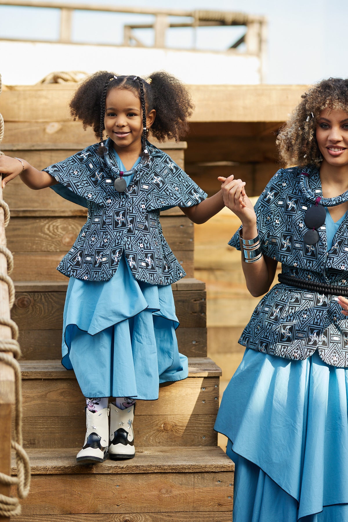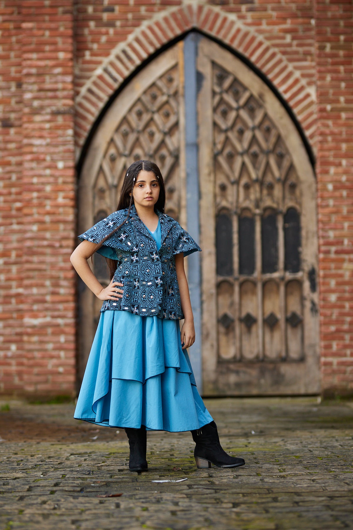 من تصميم أبرار المبارك، يأتي هذا التصميم الفاخر المكون من قطعتين ليكون الخيار المثالي للفتيات الصغيرات اللواتي يبحثن عن الأناقة خلال رمضان والعيد. يجمع بين سترة مطرزة بتصميم هيكلي وفستان بطبقات انسيابية، ليقدم مزيجًا رائعًا من الرقي العصري والتراث العربي. (يمكن تنسيقه مع فستان الأم – 2506125 – لإطلالة عائلية متناسقة!)