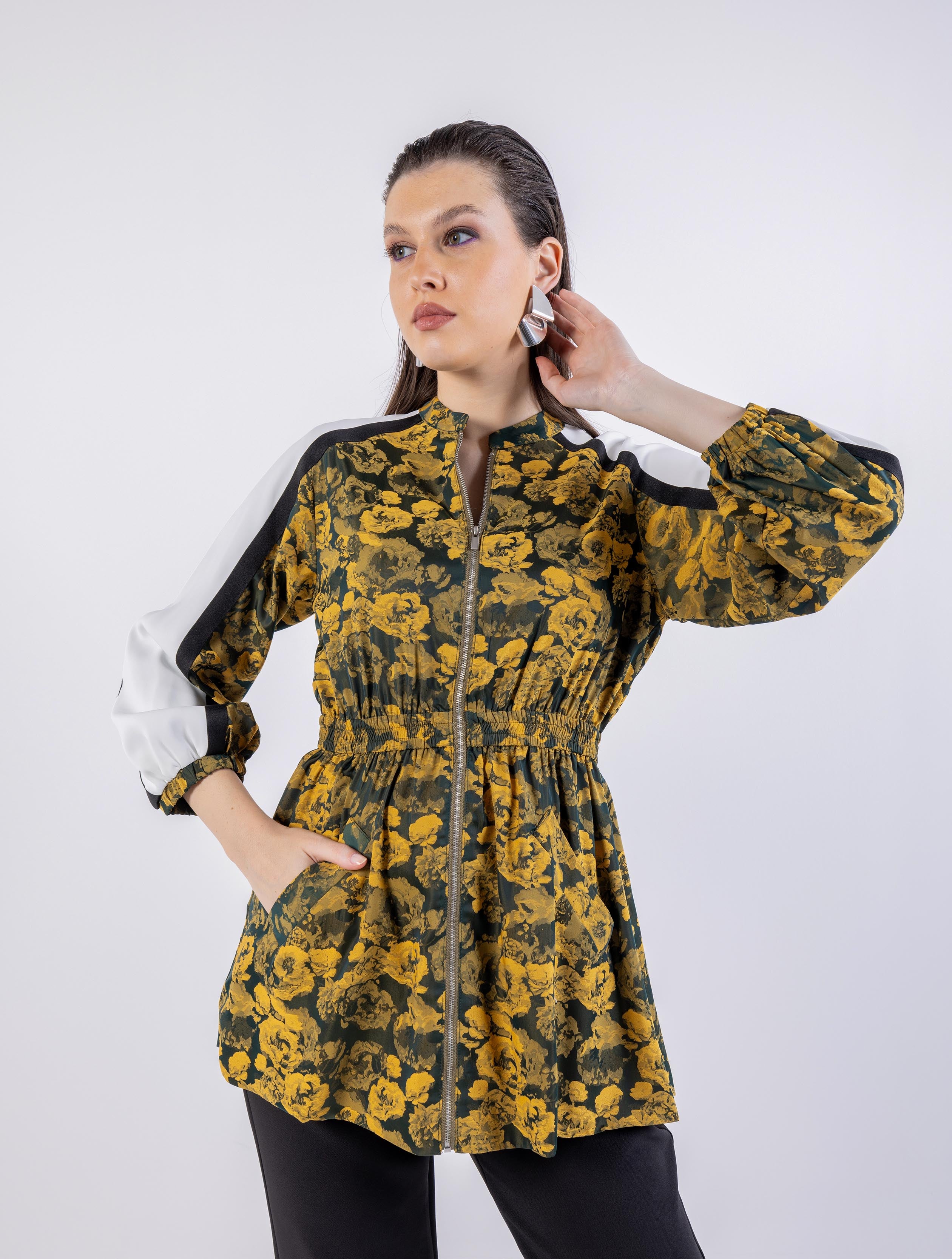 أضيفي لمسة أنثوية عصرية إلى إطلالتك مع هذا الجاكيت المزود بسحاب والمزيّن بنقشة زهور أنيقة. يتميز هذا التصميم الرياضي الأنيق بأكمام بلون متباين، وخصر مطاطي يبرز القوام، وسحاب أمامي للإغلاق. بطول يبلغ حوالي 75 سم ومحيط صدر 48 سم لمقاس S، يعد خيارًا مثاليًا للارتداء اليومي في الأجواء المعتدلة أو للخروجات الكاجوال. النقشة الزهرية تضفي طابعًا حيويًا، بينما توفر القصة المريحة حرية حركة وإطلالة عصرية.