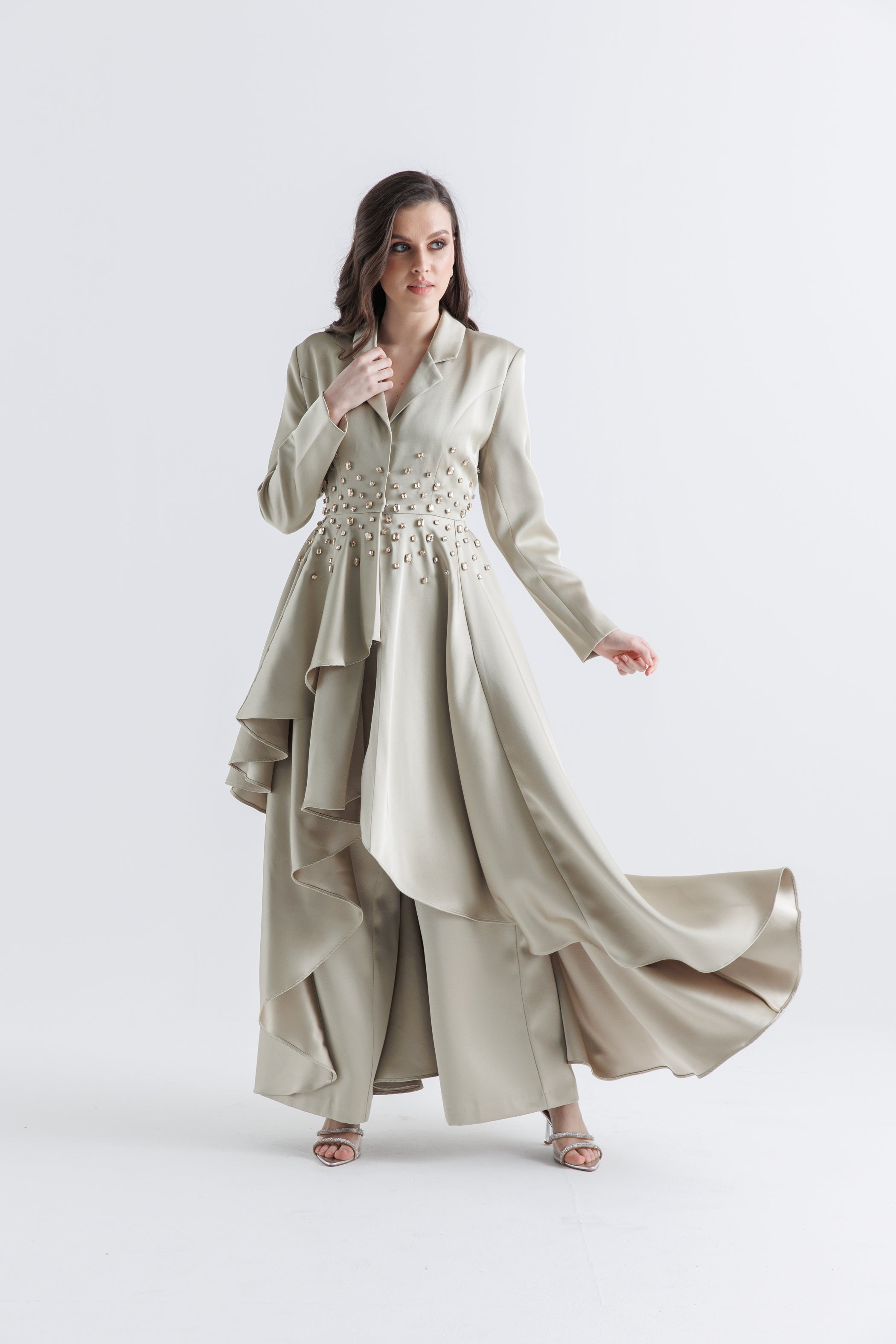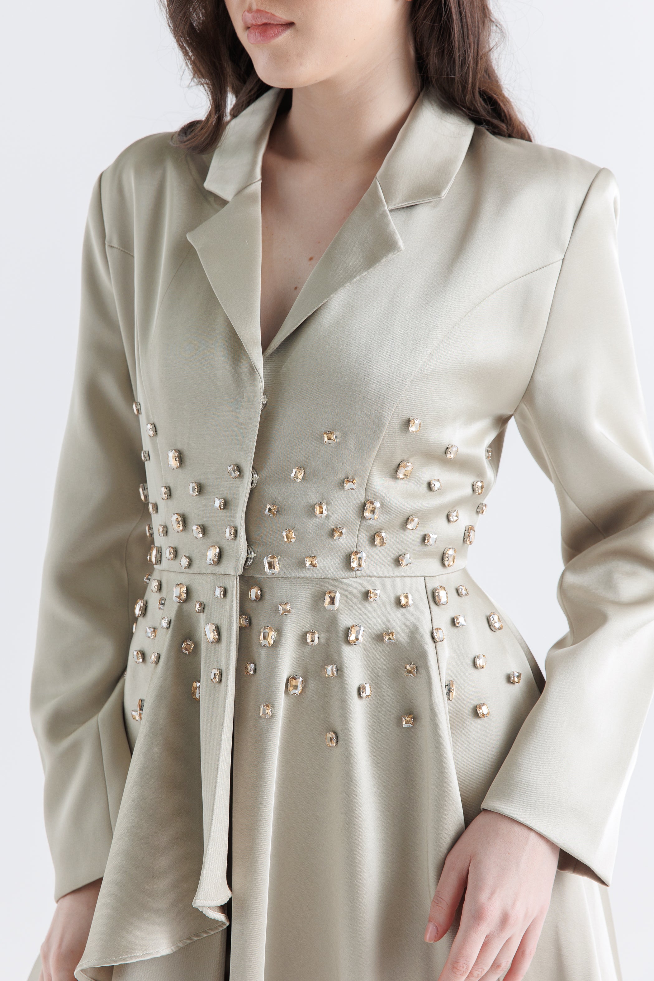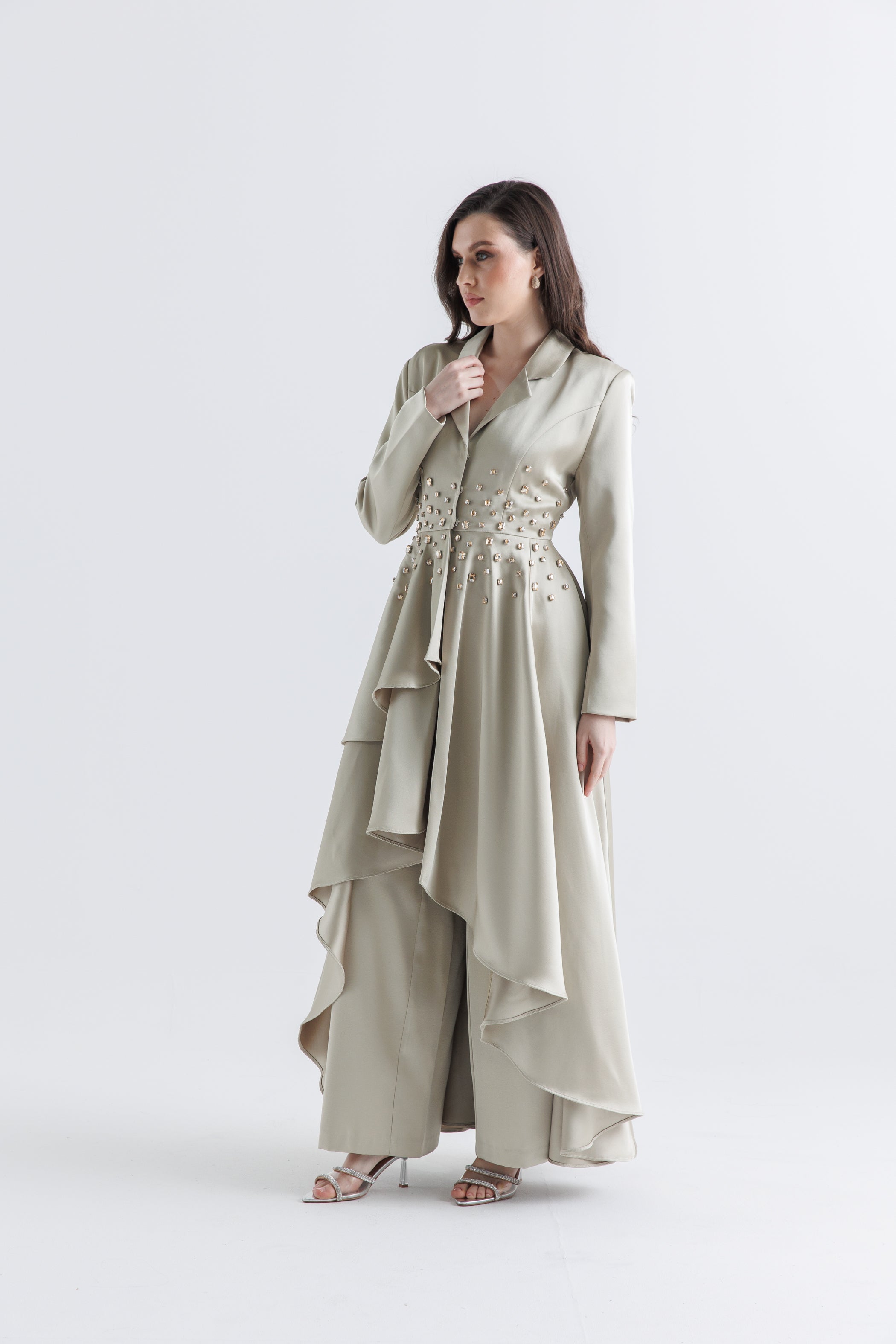 بليزر طويل بتصميم غير متماثل مزين بالكريستال – مجموعة العيد ورمضان
