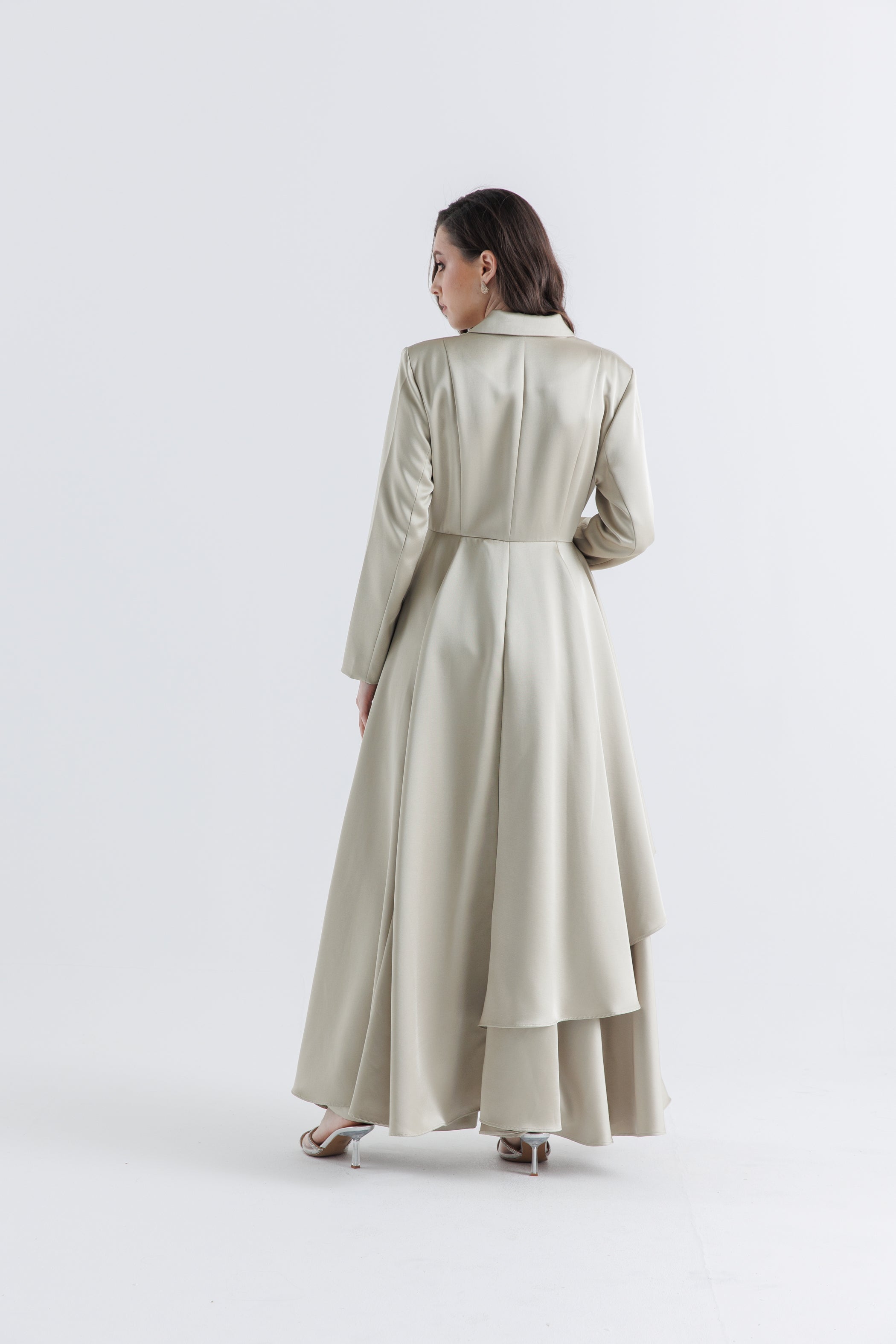 تألقي بإطلالة فاخرة مع هذا البليزر الطويل الفريد، من مجموعة العيد ورمضان الحصرية. صُمم خصيصًا للمناسبات الراقية والتجمعات الاحتفالية، حيث يجمع بين القَصَّة الهيكلية والانسيابية الأنيقة، ليكون القطعة الأساسية لموسم الأعياد.
