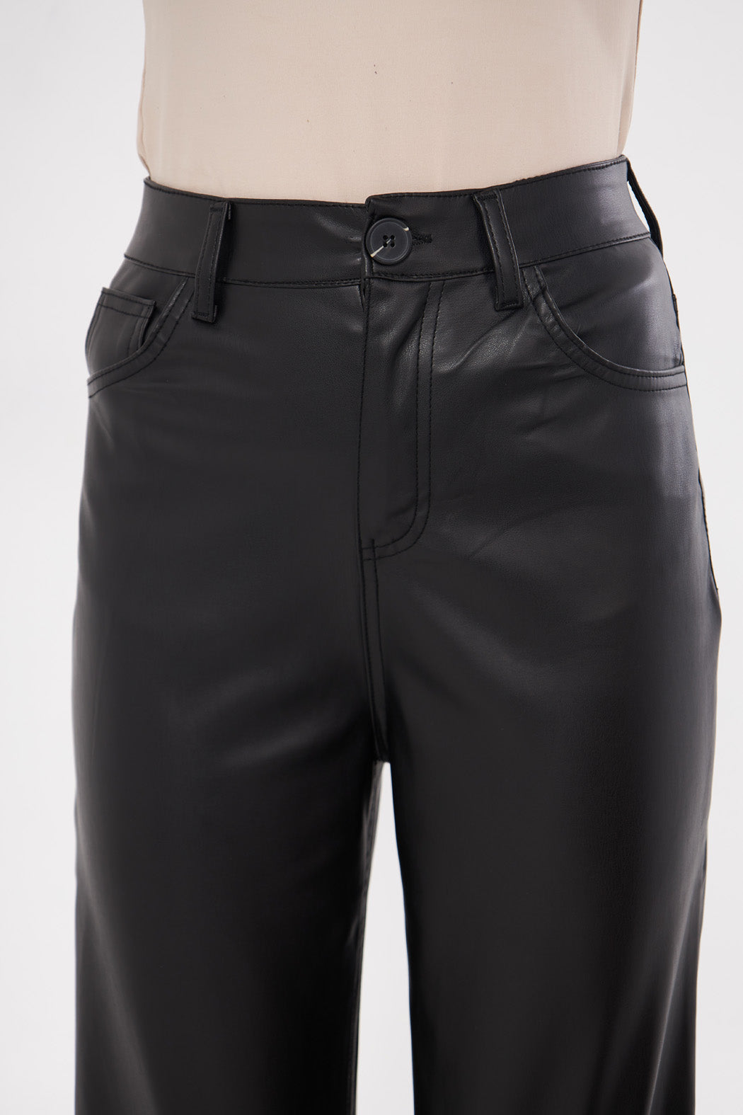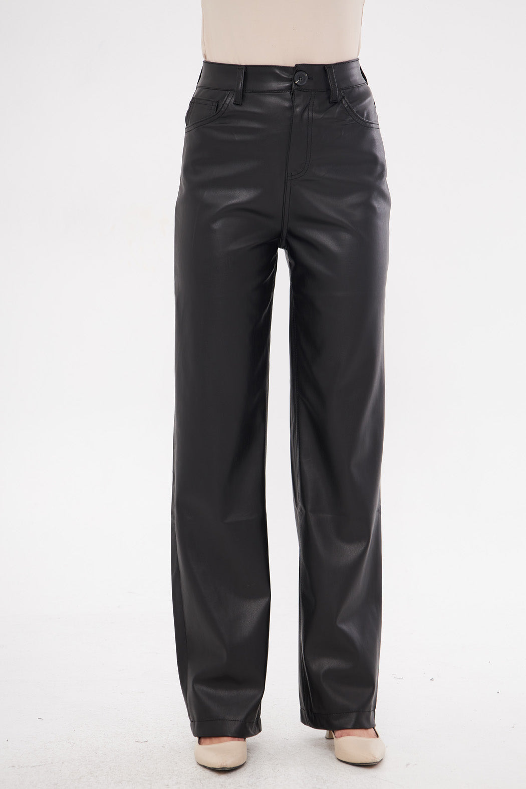 أطلقي العنان لجرأة مع بنطال الساق المستقيمة المصنوع من الجلد الصلب، والمصمم لإضفاء لمسة من الحداثة والرقي على خزانة ملابسك. يتميز هذا البنطال بقصّة ساق مستقيمة أنيقة تخلق شكلًا انسيابيًا، بينما يوفر الجلد الفاخر مظهرًا ناعمًا