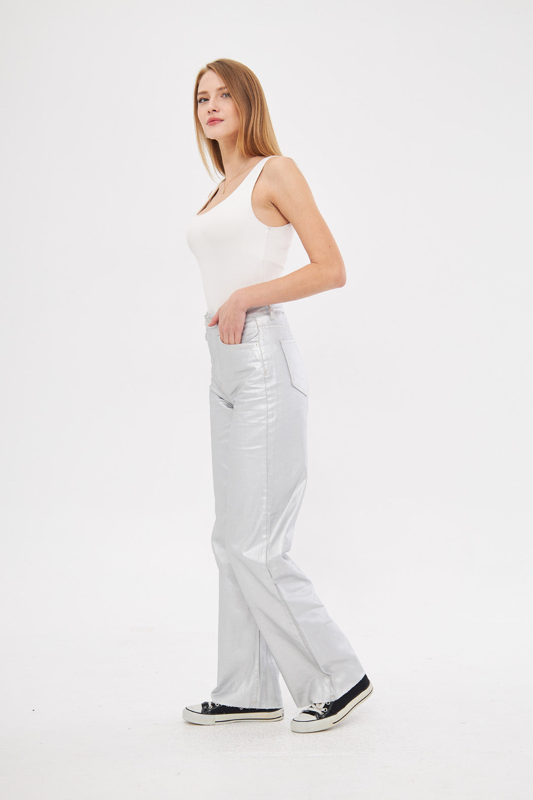 أضف لمسة جريئة إلى خزانة ملابسك مع بنطال الساق المستقيمة المصنوع من الجلد الصلب، والذي صُمم ليضفي لمسة من الرقي والتميز. يتميز هذا البنطال بقصّة ساق مستقيمة أنيقة تخلق شكلًا انسيابيًا، بينما يوفر الجلد الفاخر لمسة نهائية ناعمة وفاخرة. إنه متعدد الاستخدامات وأنيق، وهو مثالي لكل من الإطلالات الكاجوال الراقية والملابس الأكثر أناقة. يمكنك ارتداؤه مع تي شيرت بسيط لإطلالة عصرية أو ارتديه مع سترة رسمية لإطلالة أنيقة وعصرية.
