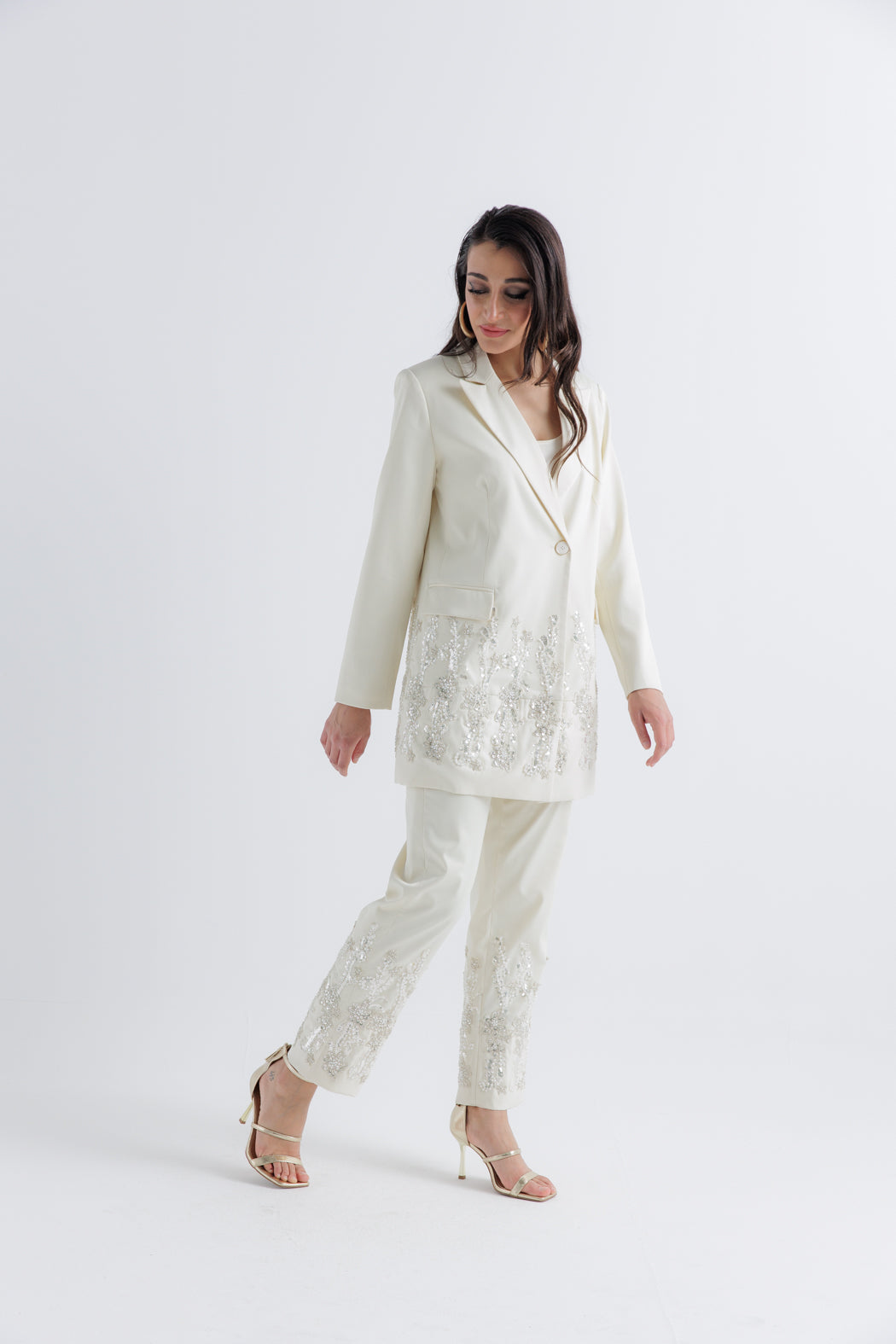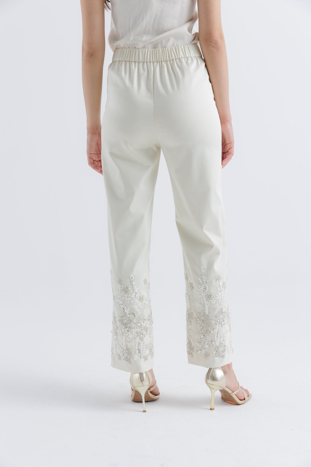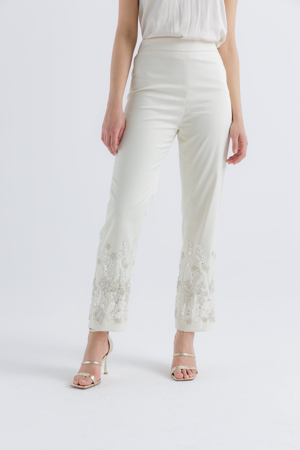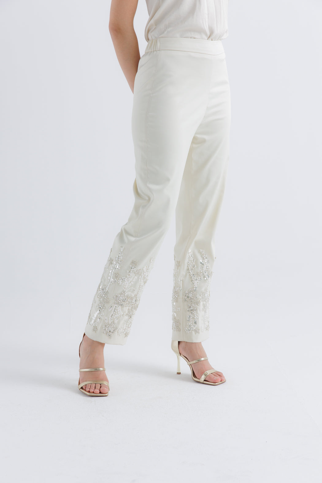 ارتقي بإطلالتك في العيد مع هذا البنطال الفاخر المصمم بأسلوب راقٍ يناسب المناسبات الخاصة. مصنوع من قماش فاخر، يتميز بتطريز يدوي دقيق بزخارف زهرية على الحافة، مما يضفي لمسة من التألق والفخامة على مظهرك. يوفر التصميم ذو الخصر العالي والقصّة المستقيمة مزيجًا مثاليًا من الأناقة والراحة، مما يجعله خيارًا مثالياً لعشاق الموضة العربية العصرية.