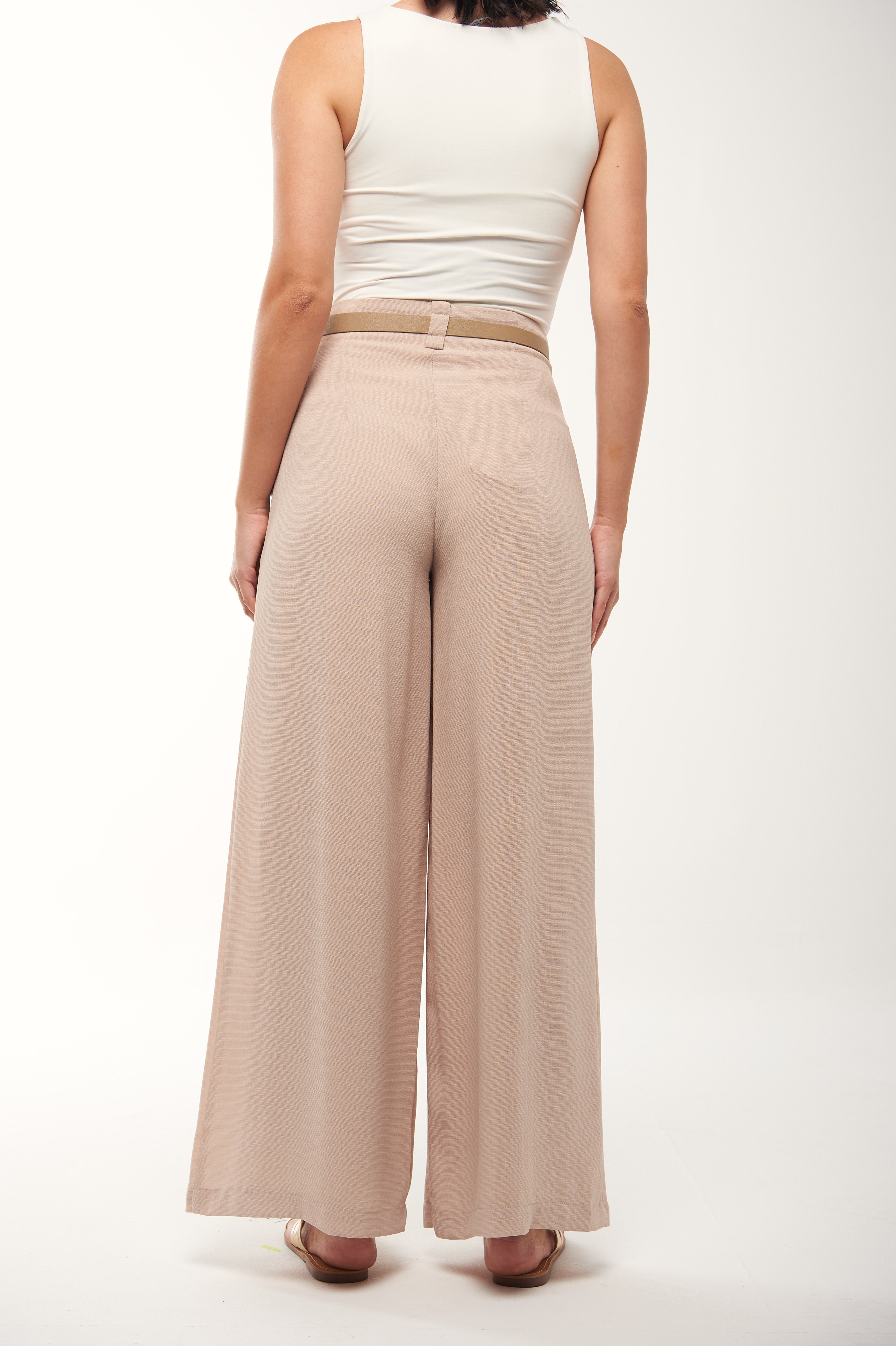 أضيفي لمسة من الأناقة العملية إلى خزانة ملابسك مع هذا البنطال الواسع بقصّته الرسمية والمريحة. يتميز بثنيات أمامية أنيقة وحزام من الجلد الصناعي يمنحك إطلالة مرتبة سواء للعمل أو الإطلالات اليومية الراقية.