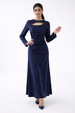 بطول تقريبي 145 سم، ينسدل الفستان بسلاسة ليمنحك حضوراً أنيقاً في أمسيات رمضان، تجمعات الإفطار، ومناسبات العيد الخاصة.