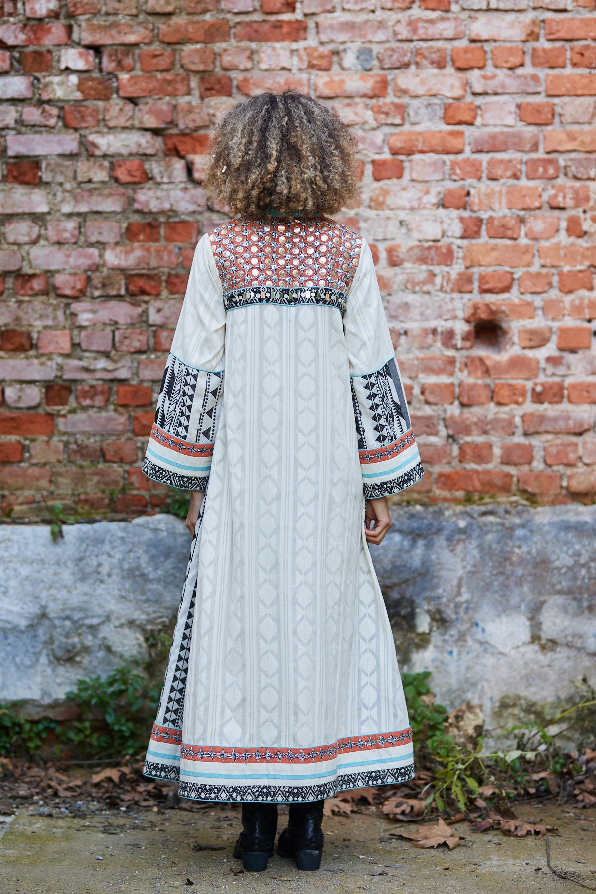 استمتعي بمزيج رائع من التقاليد والأناقة مع هذا الفستان الماكسي المطرز يدويًا، من تصميم أبرار المبارك. مصنوع بدقة فائقة مع تطريز يدوي مستوحى من الفن التراثي الغني، مما يجعله خيارًا مثاليًا للمناسبات الرمضانية والتجمعات الخاصة. يتميز بقصّة انسيابية، حرفية متقنة، ونقوش راقية، ليمنحكِ إطلالة كلاسيكية أنيقة وجذابة.