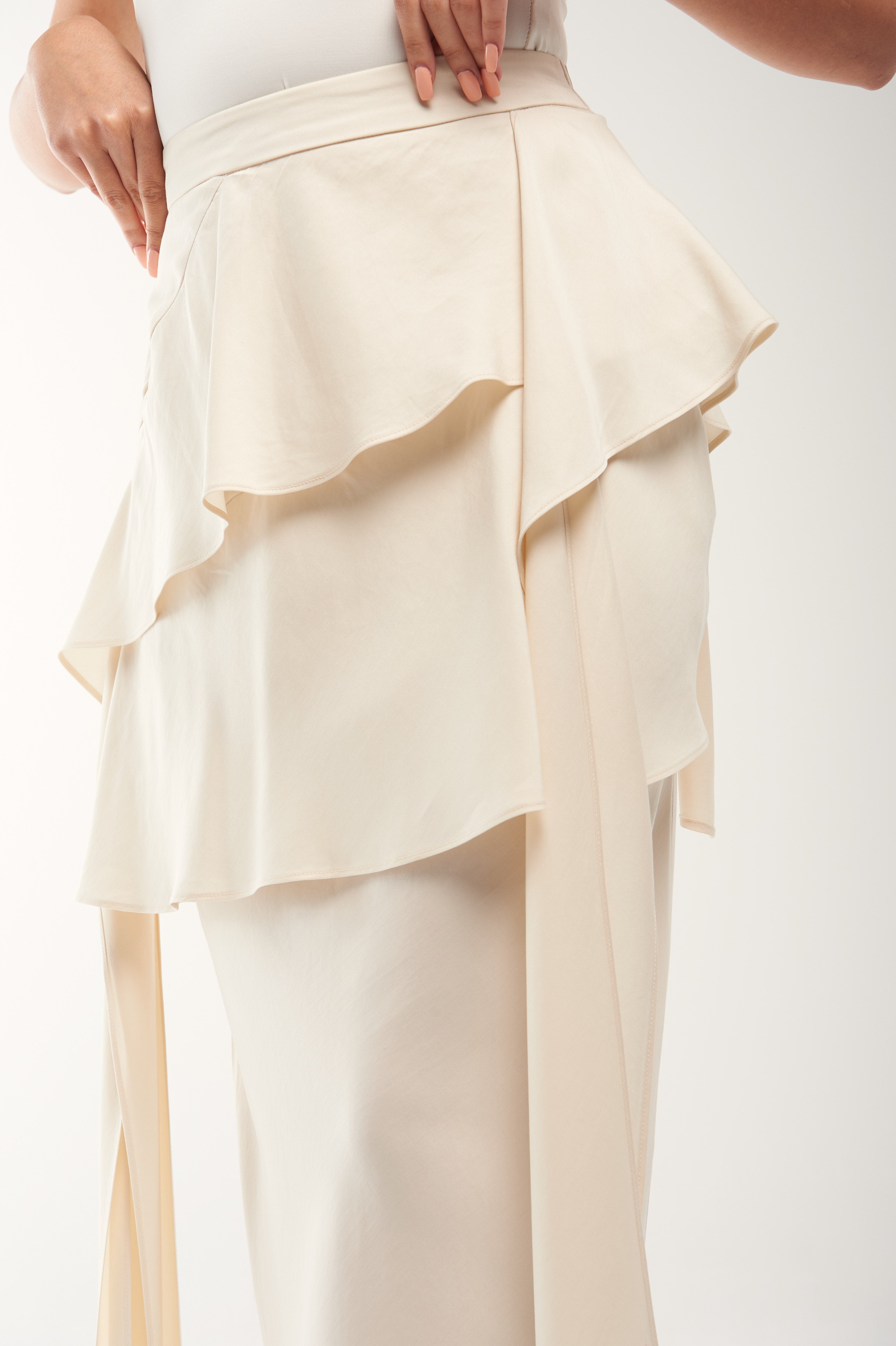 أضيفي لمسة من الرقي إلى خزانتك مع هذه التنورة الماكسي ذات الطبقات الكشكش، المصممة بانسيابية راقية تتماشى مع كل حركة. تتميز بقَصّة أنثوية ناعمة ولمسات تصميم عصري تضيف بعداً جمالياً لإطلالاتك اليومية أو المسائية.