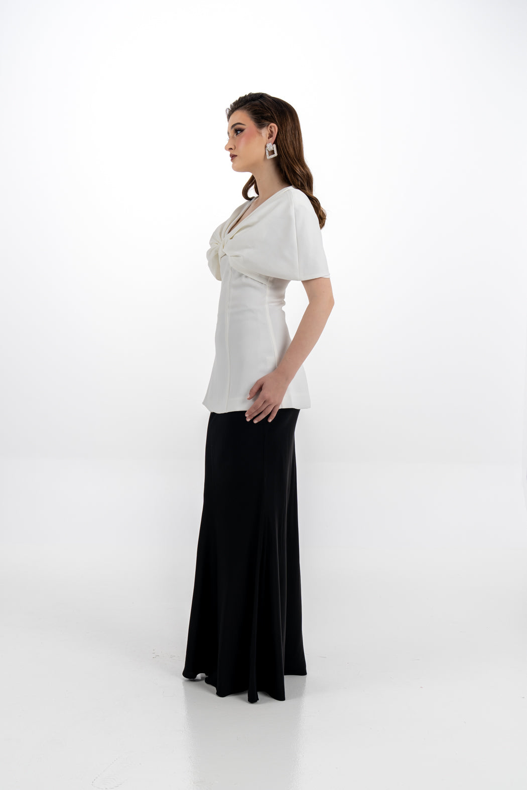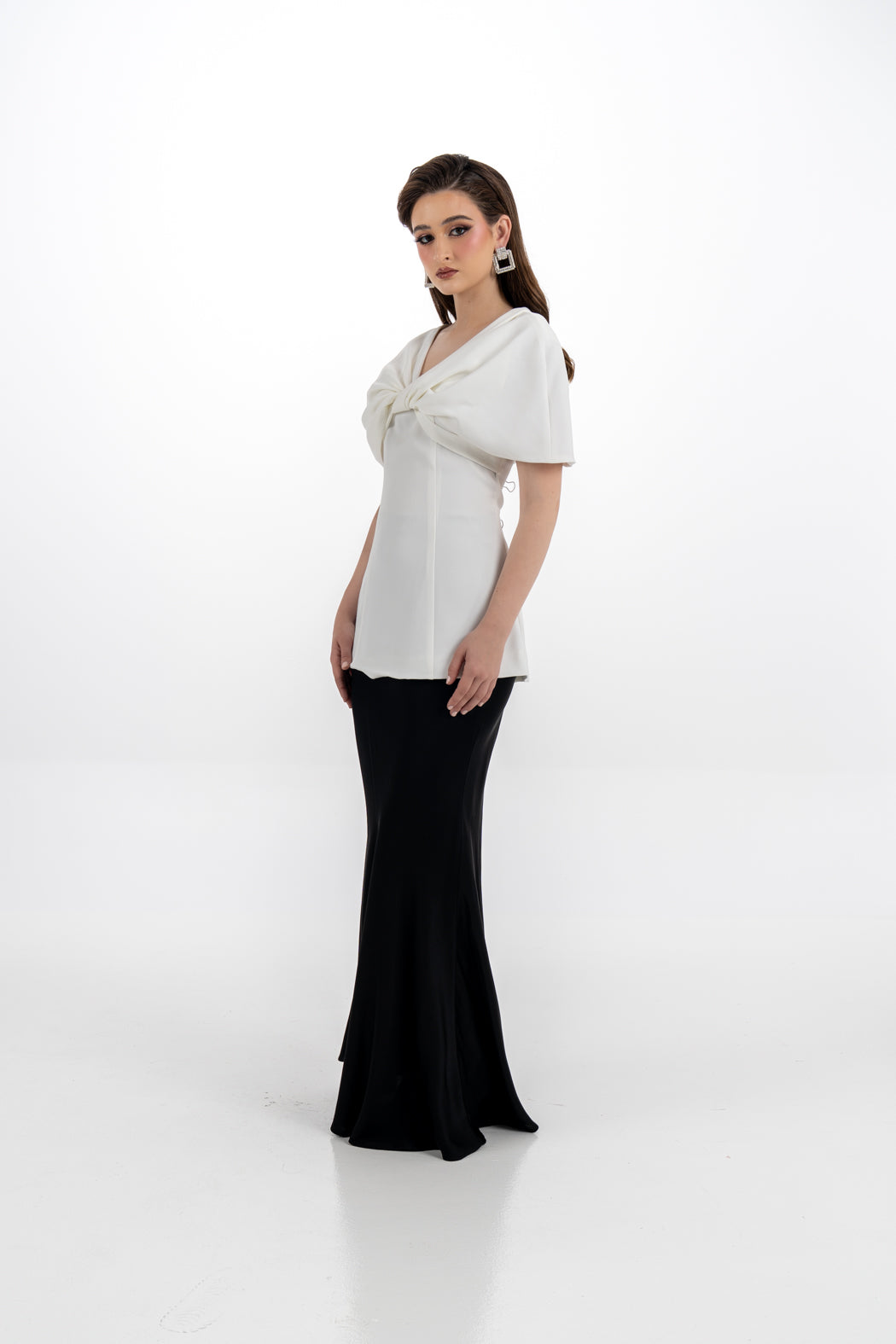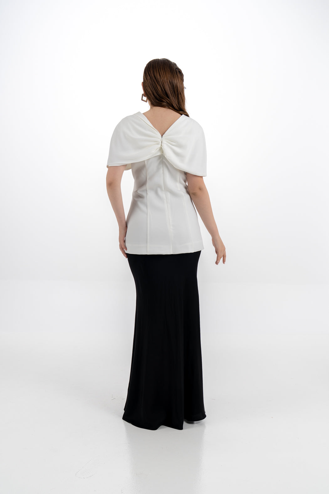 اختاري لمسة فاخرة مع هذه البلوزة المصممة بأسلوب الكاب الجذاب، والمزينة بعقدة أمامية كبيرة تبرز الأنوثة والتميّز. تتميز البلوزة بقصة مخصّرة تعزز من جمال القوام، مع أكتاف منسدلة تمنحك مظهراً ساحراً. مثالية للمناسبات الرسمية وتنسيقها مع تنانير ضيقة أو بناطيل واسعة.