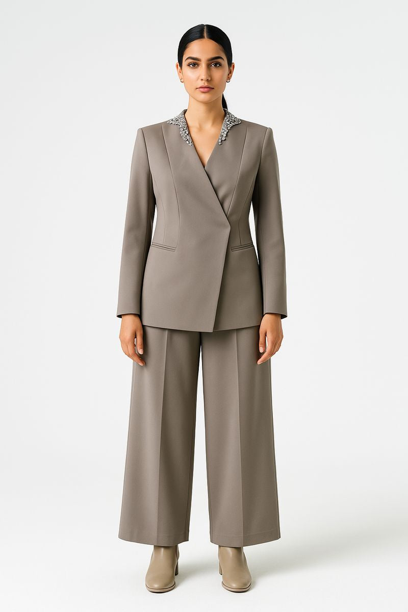نسّقي بنطال أمارا الأنيق واسع الساق مع الجاكيت رقم 2575014 للحصول على إطلالة متناسقة وفاخرة تناسب أجواء رمضان والعيد. يمكن إكمال الإطلالة ببلوزة أنيقة وحذاء بكعب أو بوت قصير، مع تعديل السحّاب الجانبي لإطلالة أكثر تحديدًا أو انسيابية حسب الرغبة.