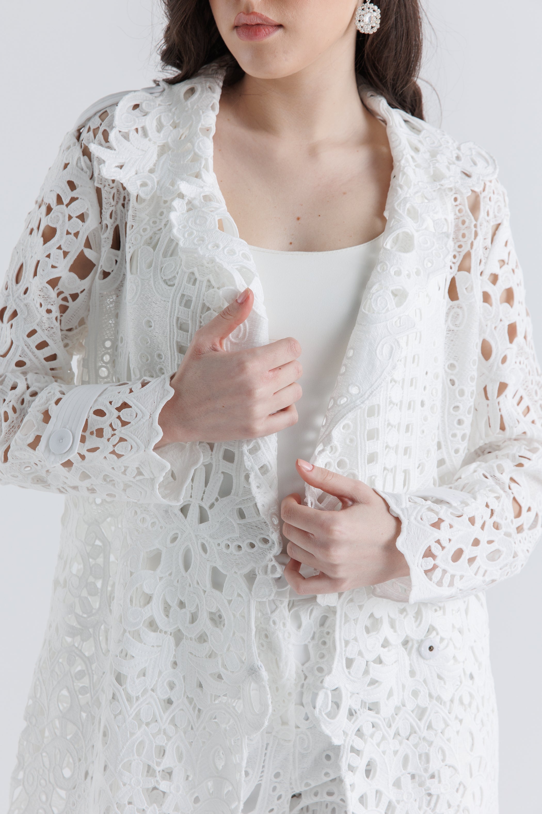 جاكيت طويل من قماش الليزر كَت (الدانتيل المفتوح)
