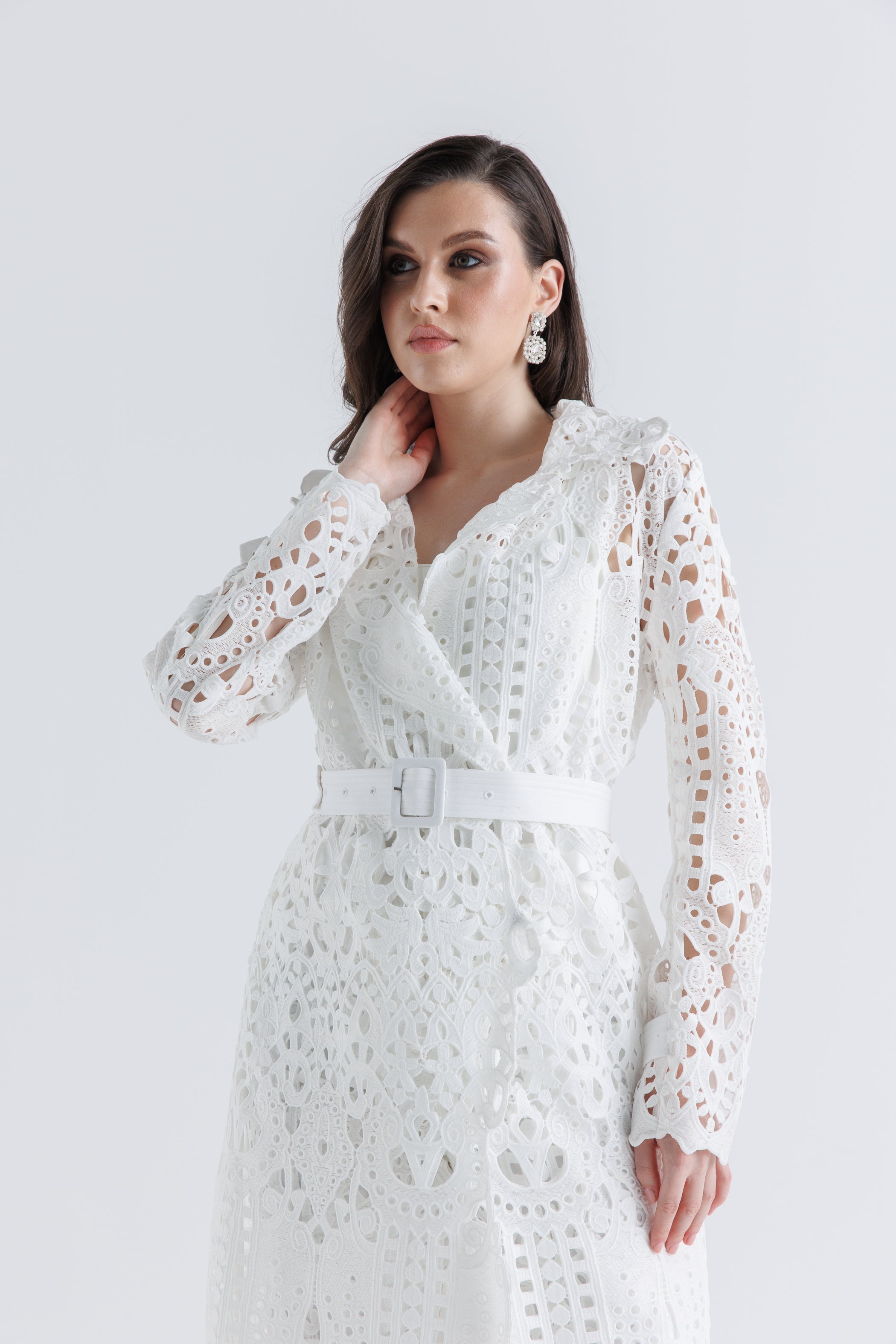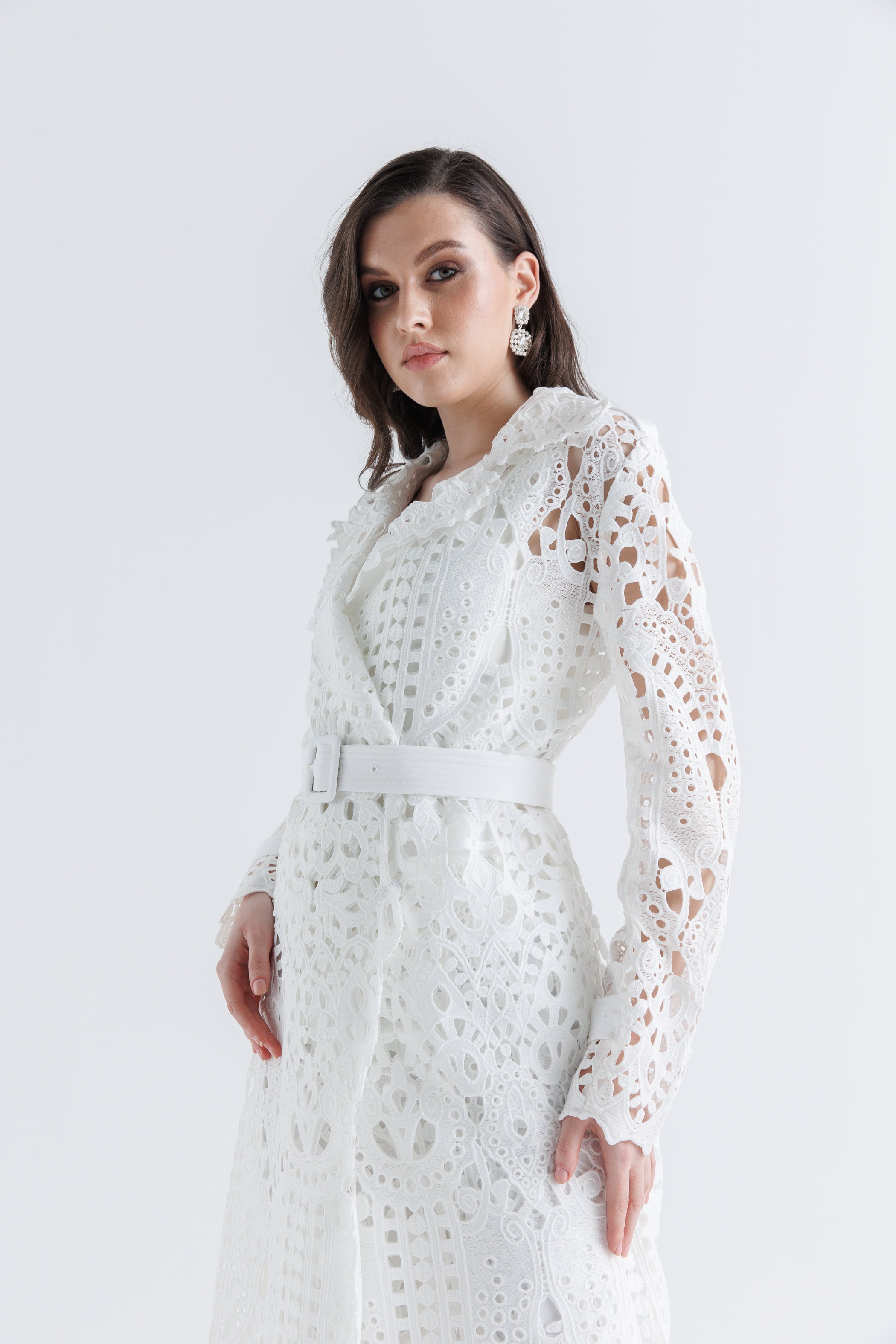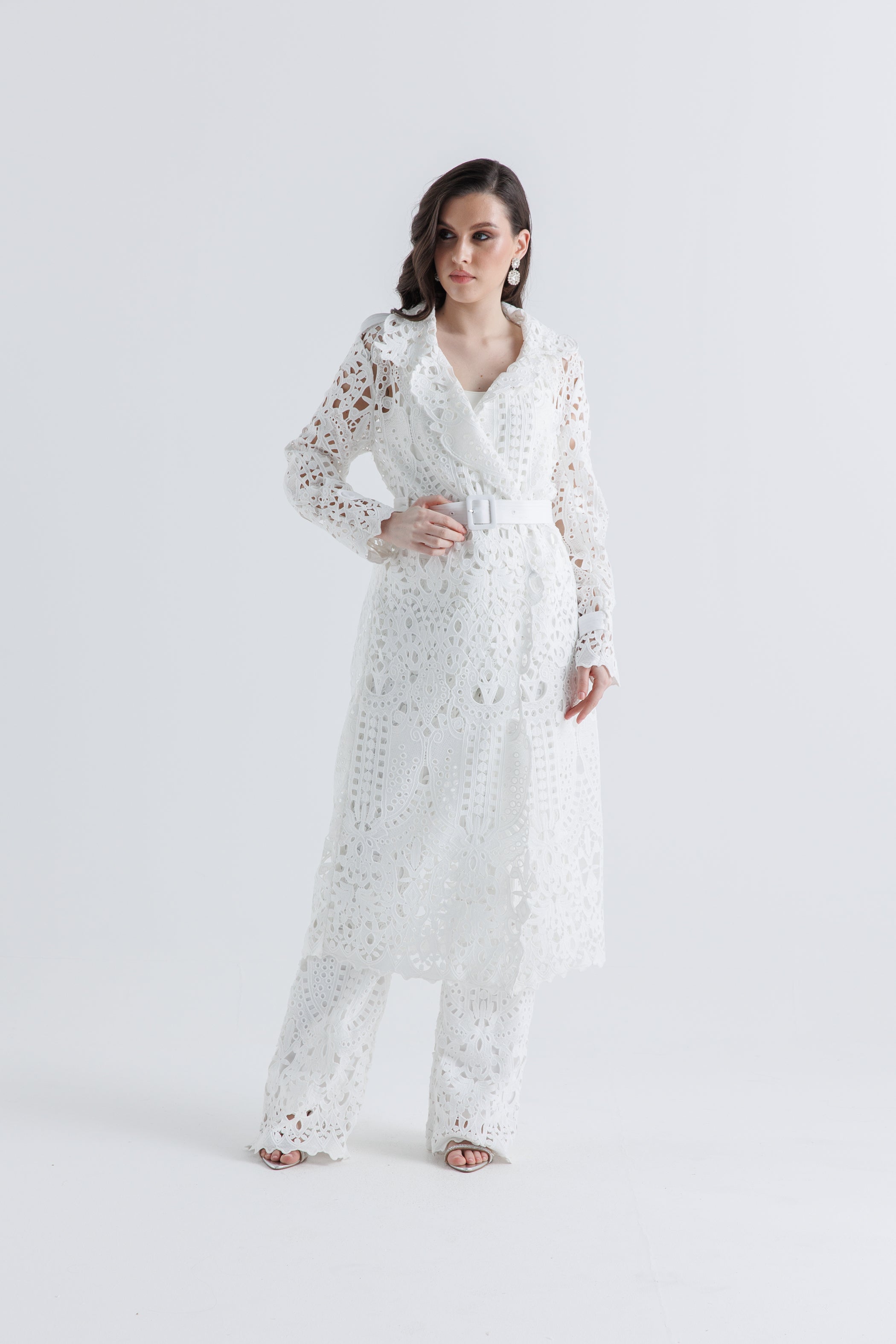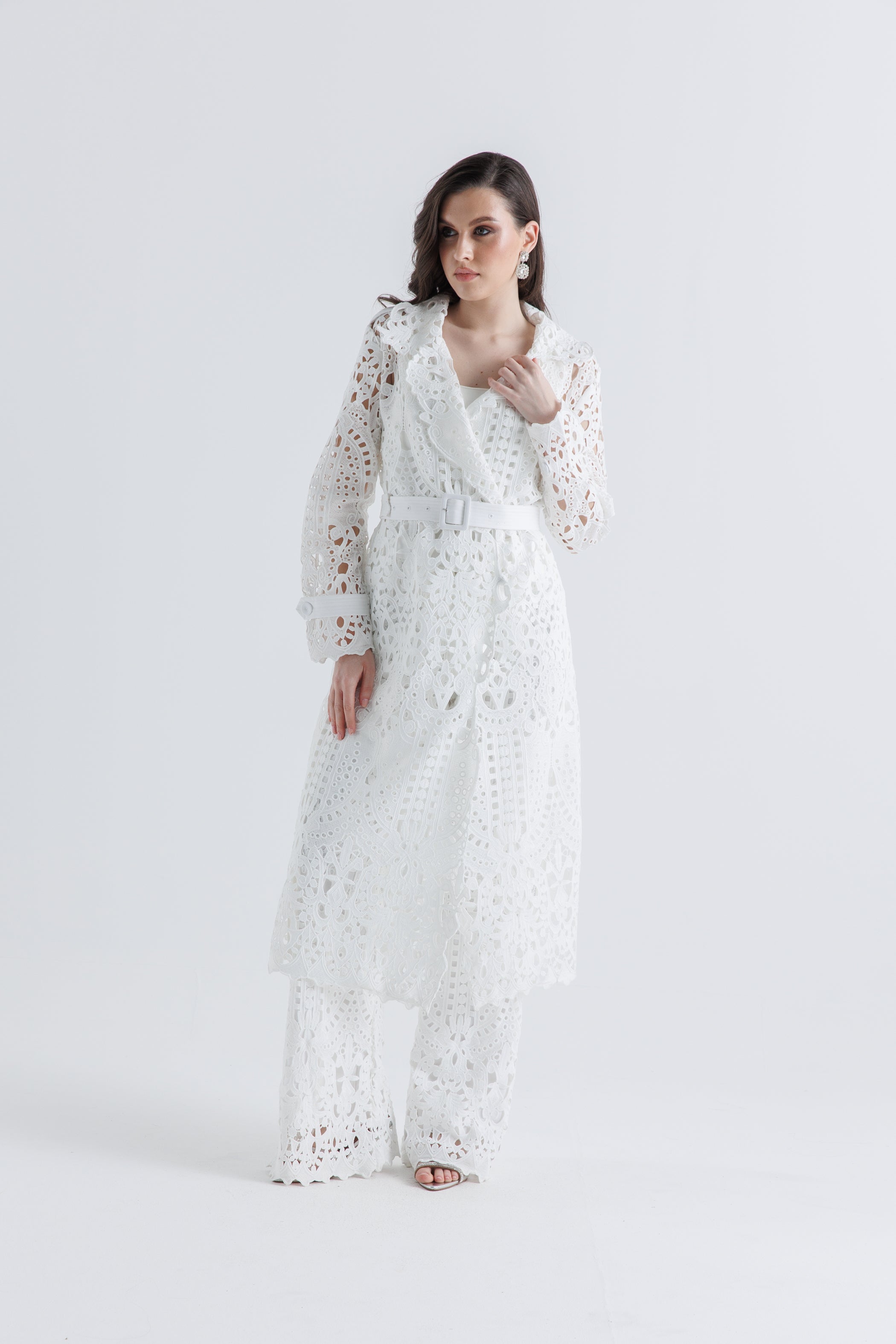 أضيفي لمسة من الأناقة والرقي إلى إطلالتك مع هذا الجاكيت الطويل المصنوع من قماش الليزر كَت المميز. يتميز بتصميم أنثوي بقَصة محددة عند الخصر وتفاصيل قصات مفتوحة متقنة تغطي القماش بالكامل. الياقة الواسعة والحواف المزخرفة تضيفان لمسة فاخرة، بينما الحزام المصنوع من نفس القماش يبرز الخصر لإطلالة أنيقة. مثالي للتنسيق فوق الإطلالات الرسمية أو الكاجوال.