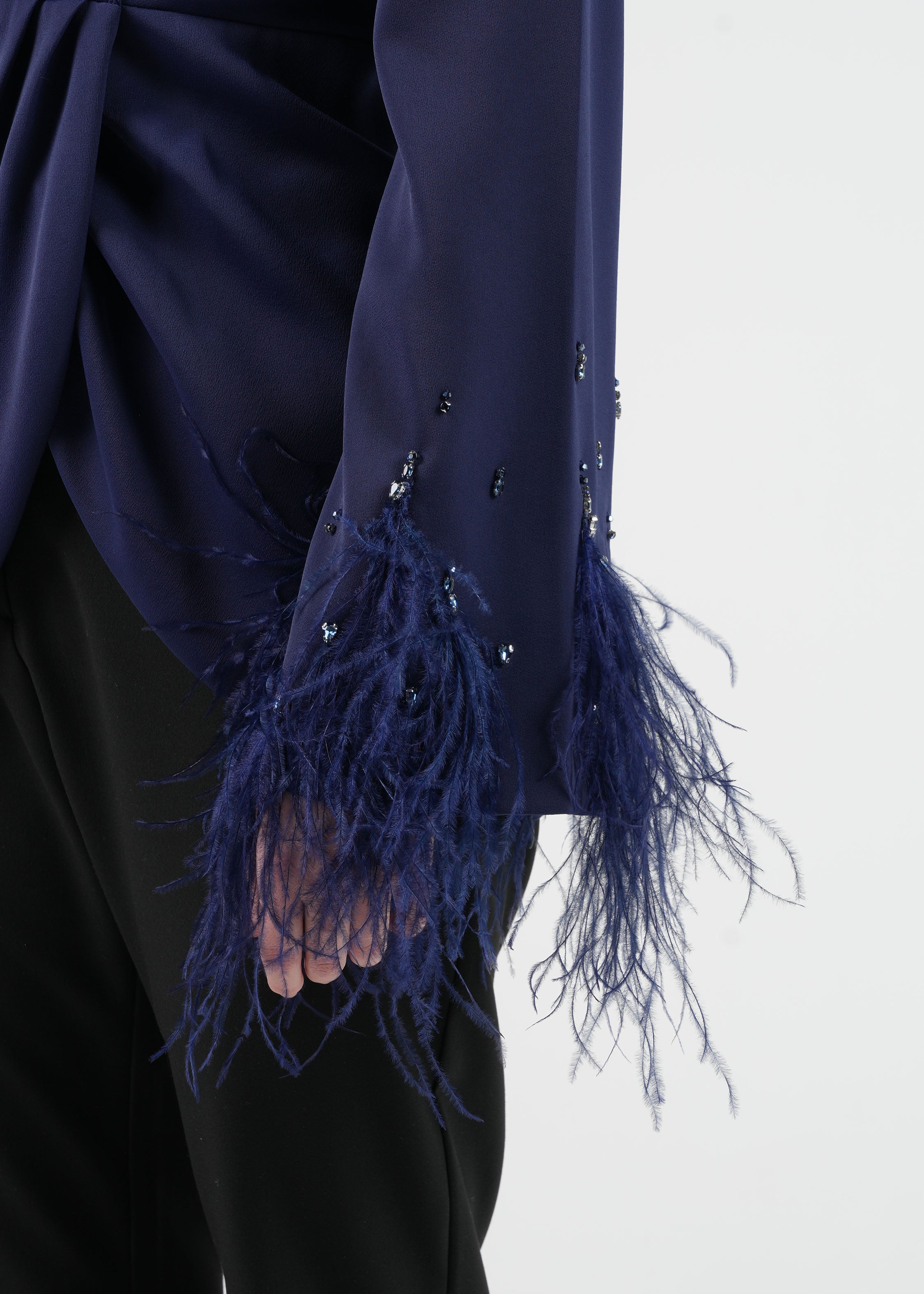 Elevate your style with this Embellished Feather Cuff Blouse, featuring a sweetheart neckline, intricate embellishments, and dramatic feather-adorned cuffs. The lace-up back detail ensures a flattering, adjustable fit, making it perfect for special occasions and evening outings.