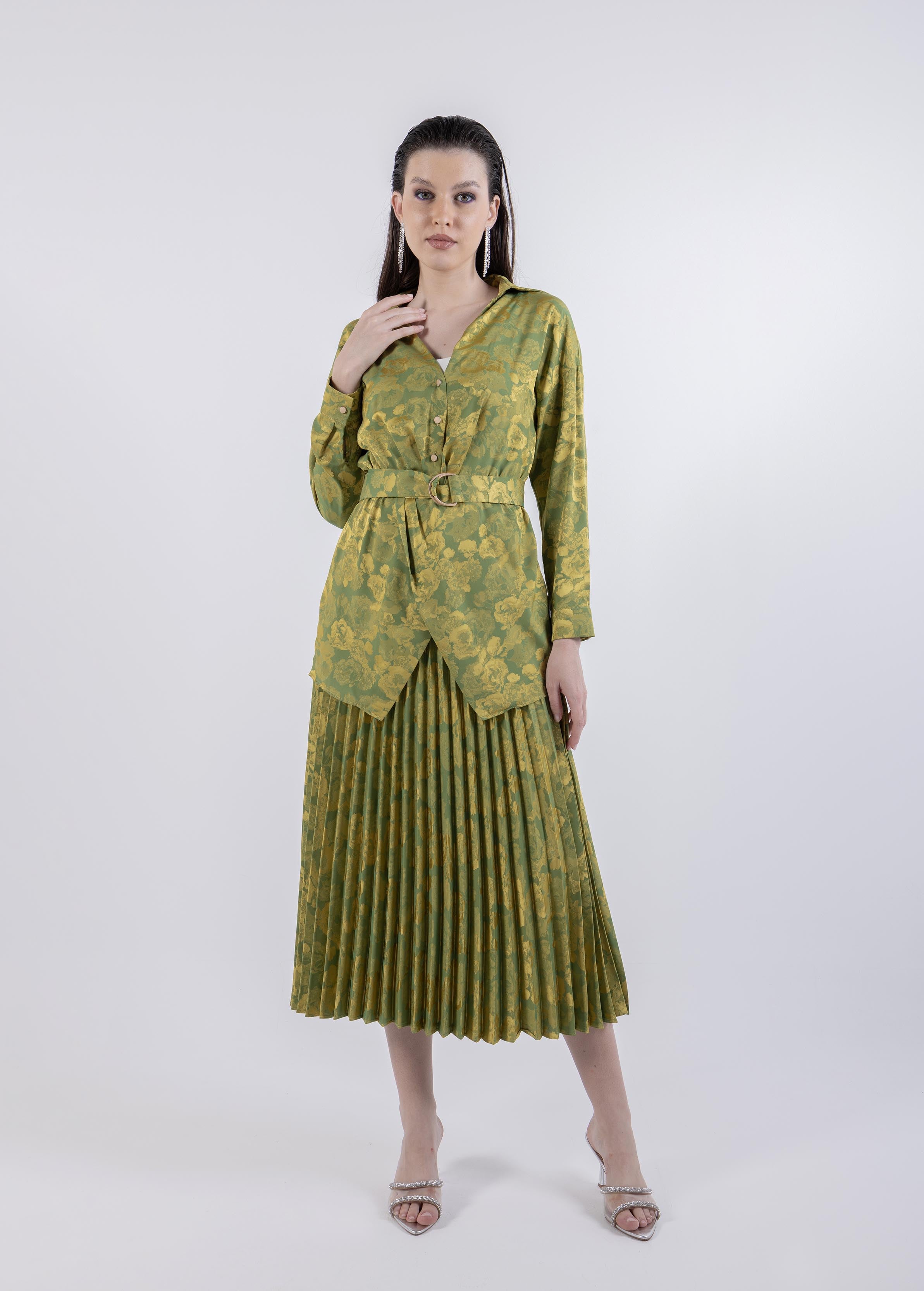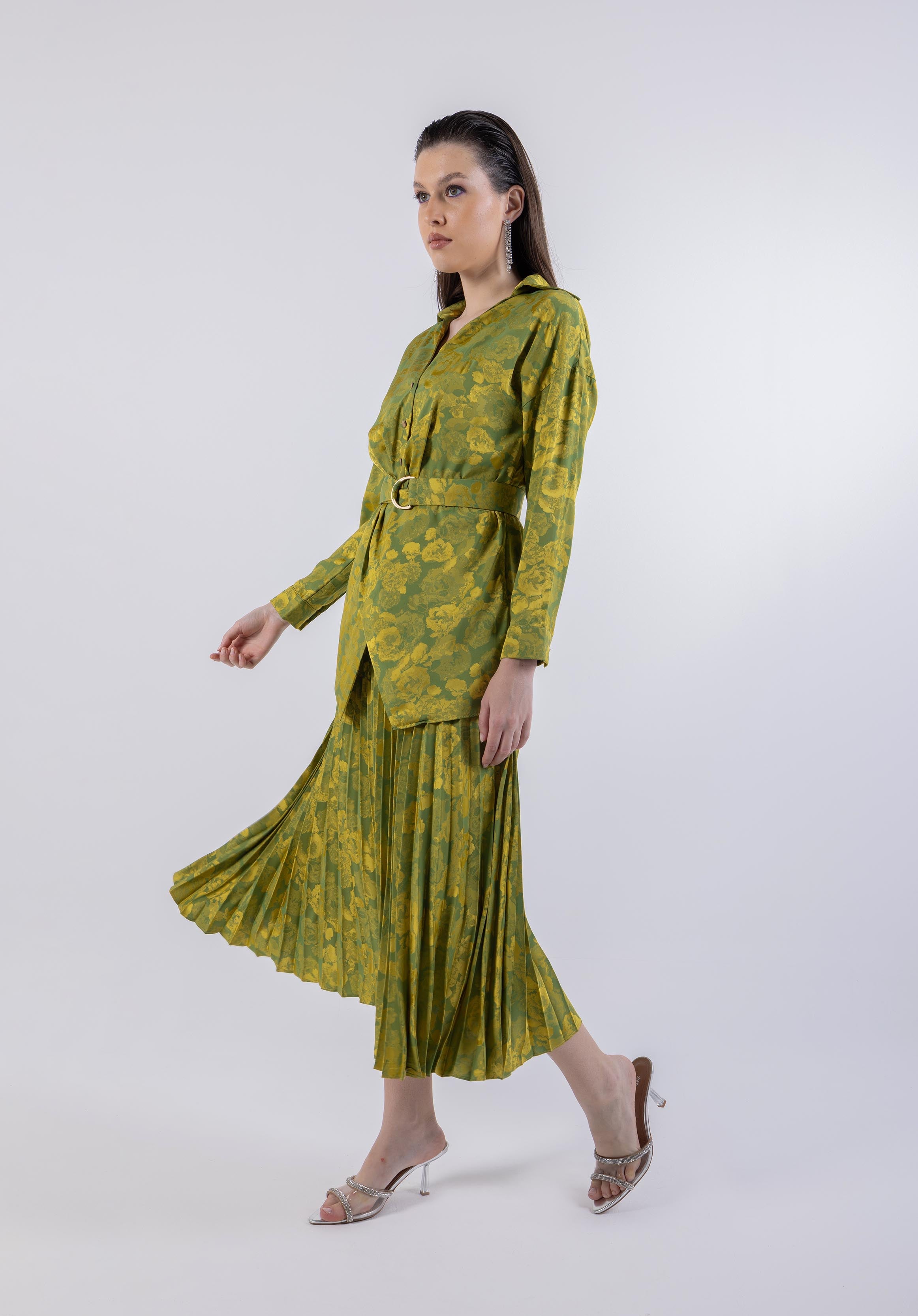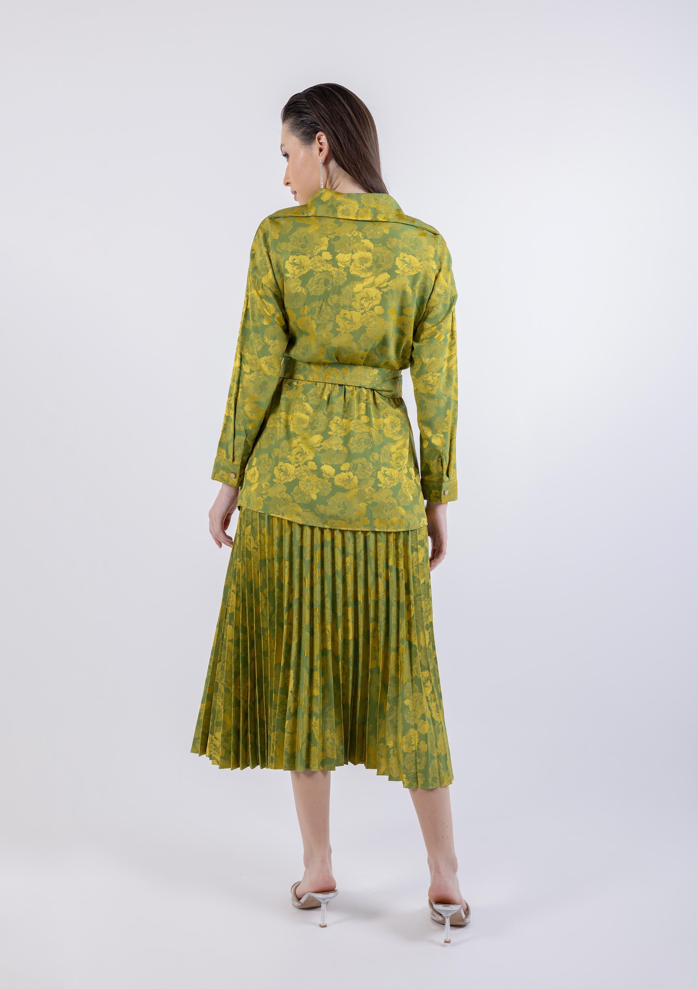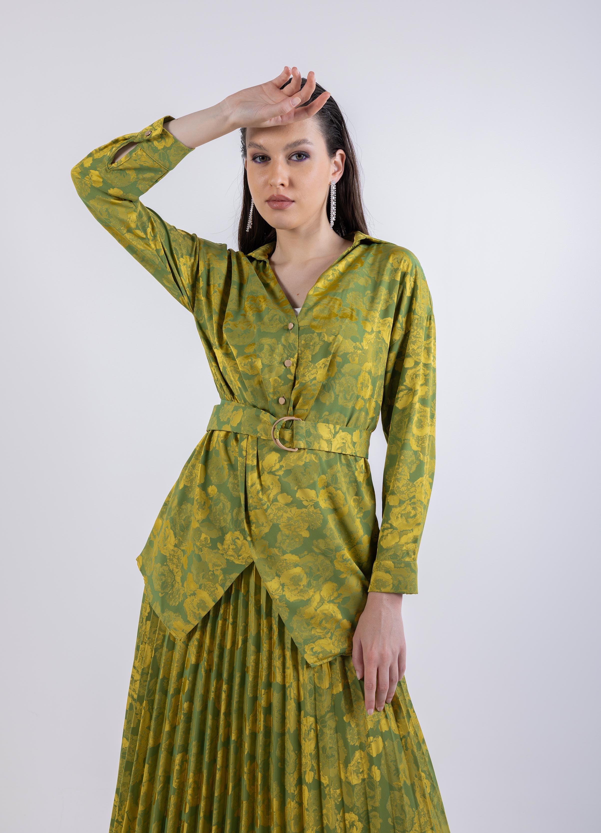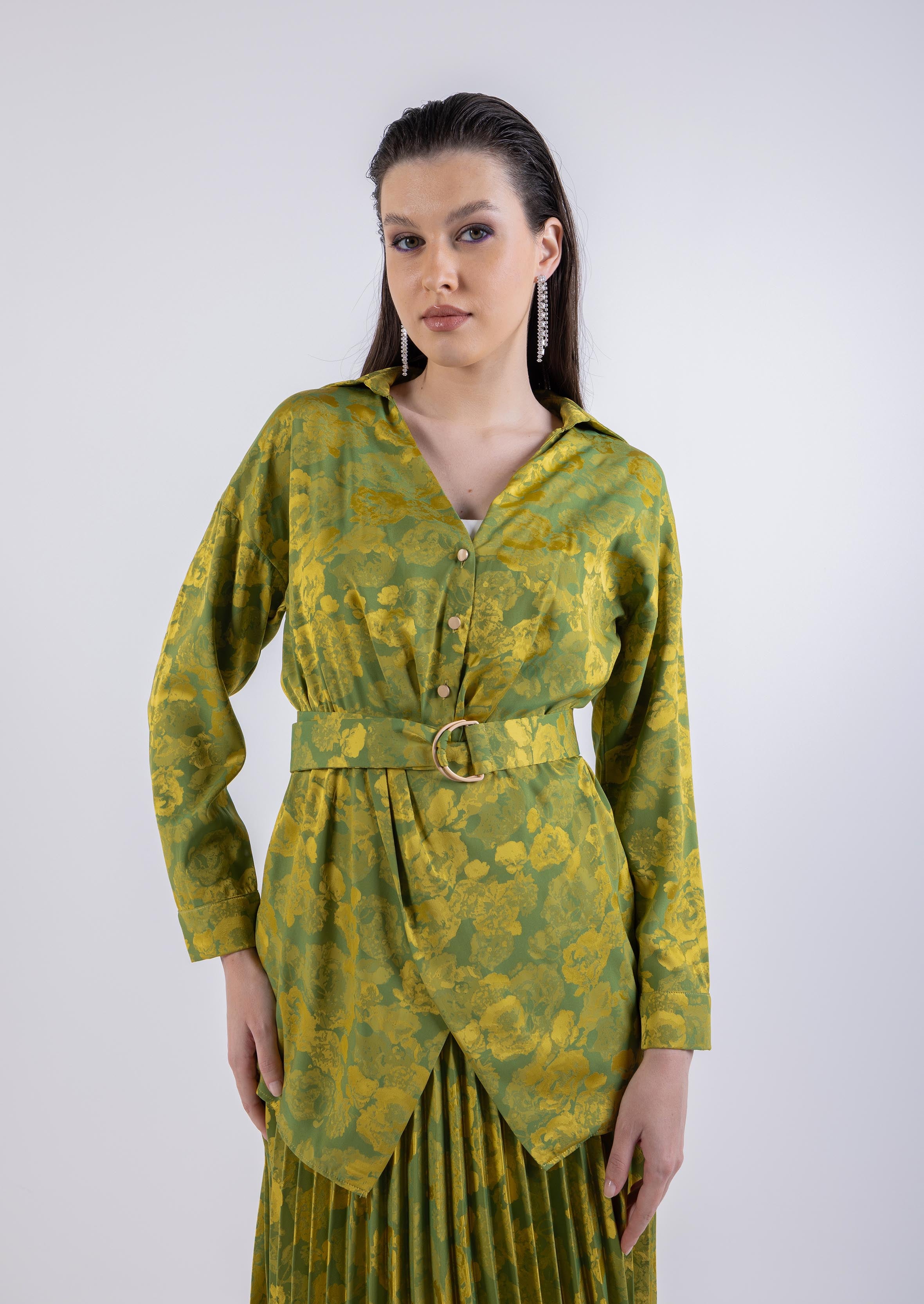 Embrace elegance and versatility with our Chic Floral Print Top designed using a harmonious blend of golden & olive tones. This top features a V-neckline and long sleeves, ideal for a sophisticated look. making this top perfect for various occasions