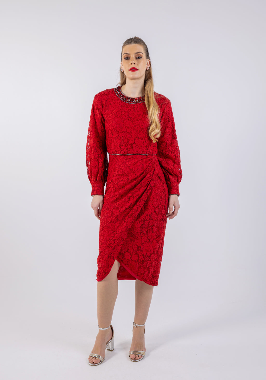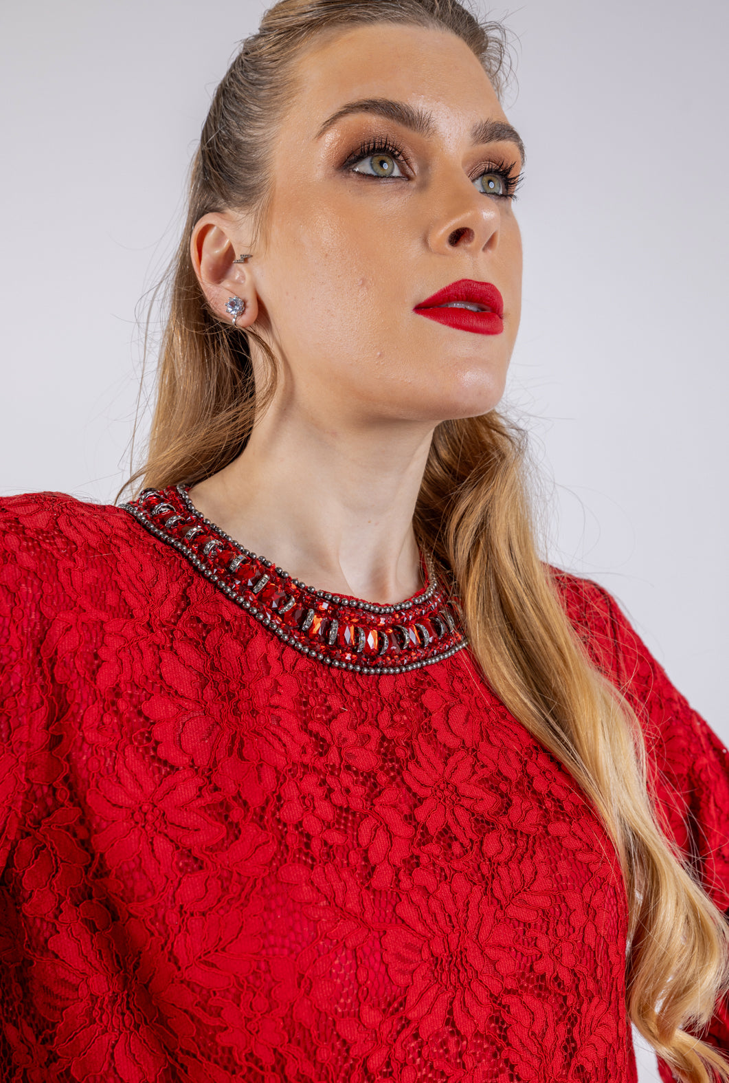 Neckline: High Rounded Neckline with Subtle Embellishments