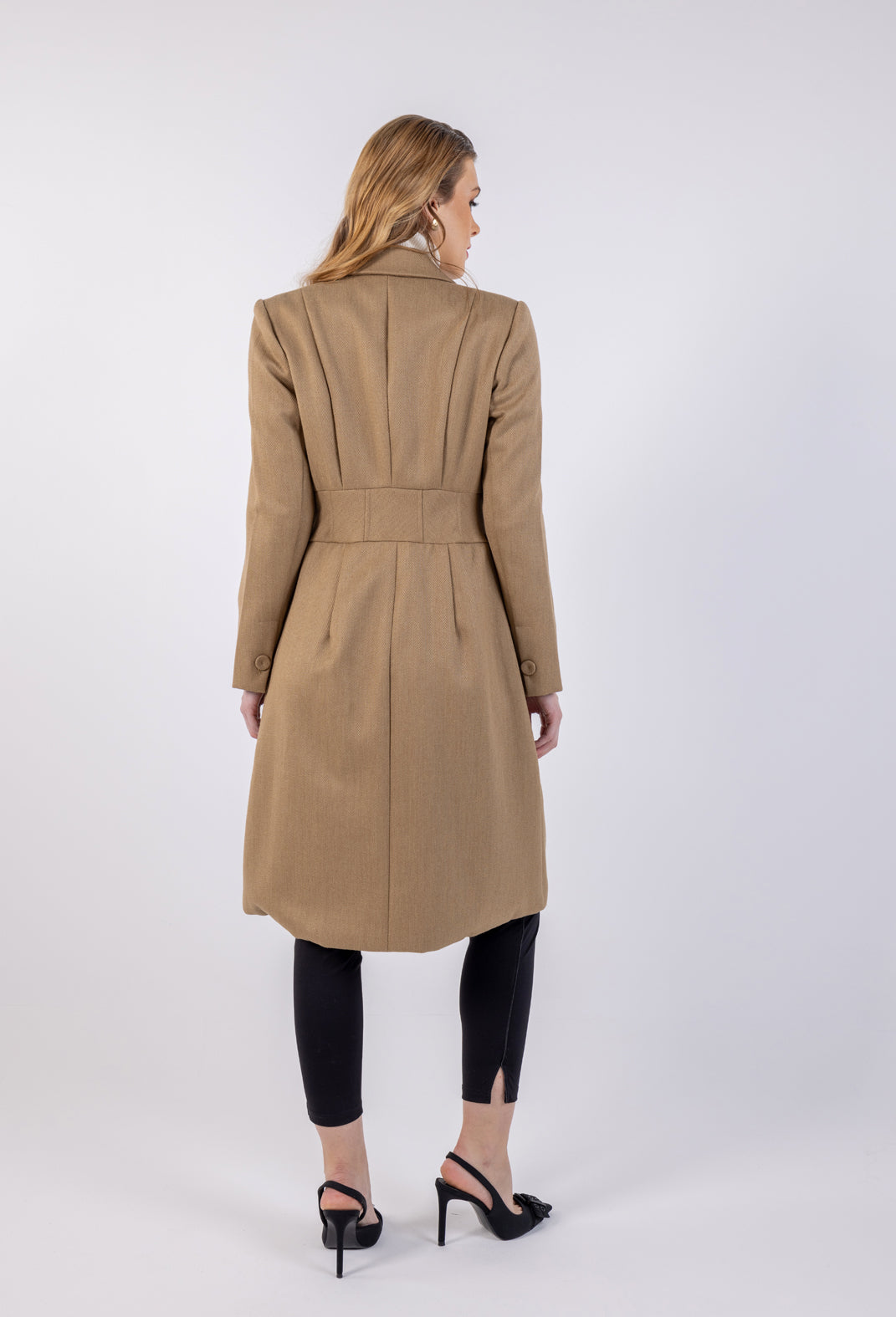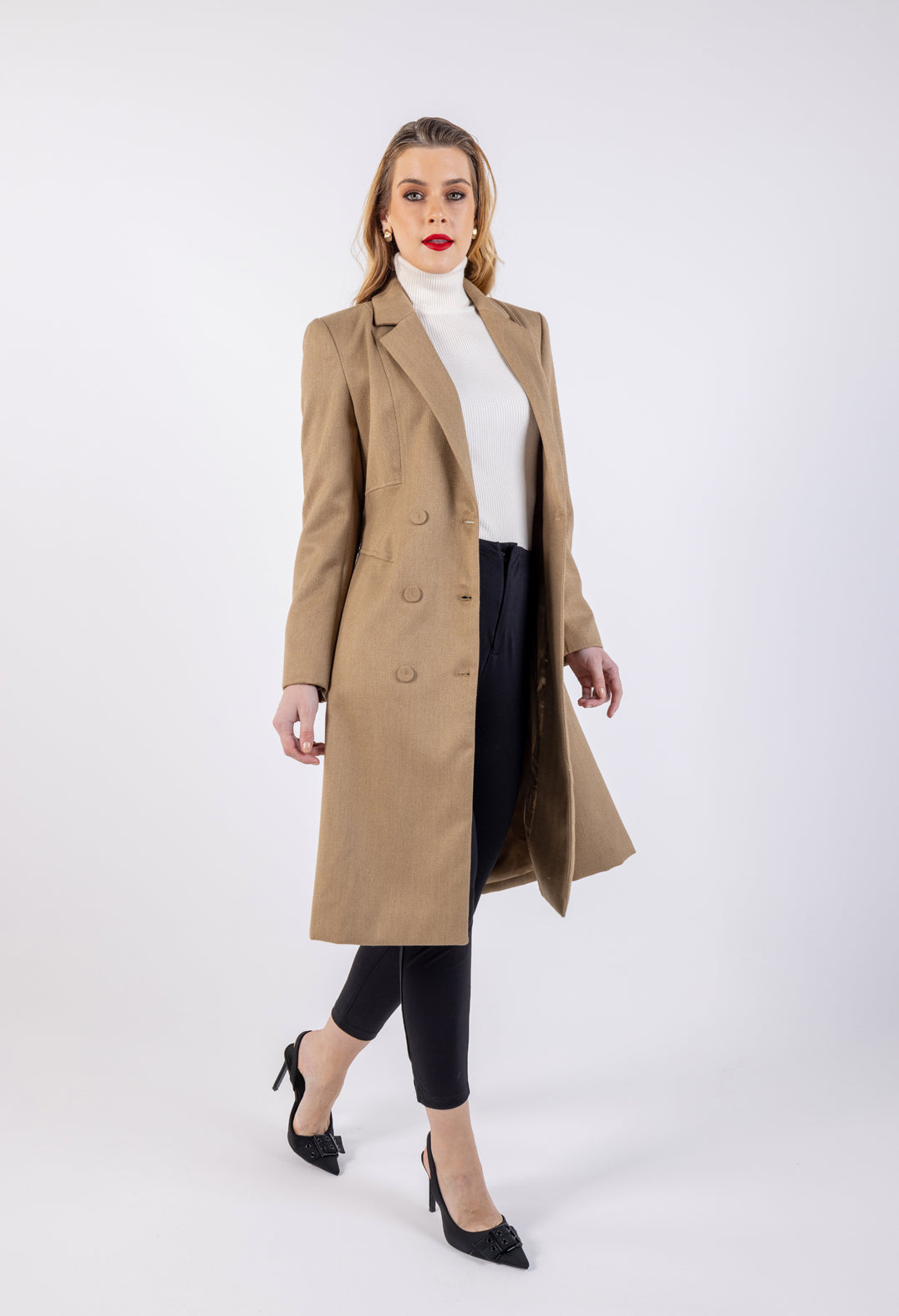 Elevate your wardrobe with this timeless double-breasted coat, designed to bring sophistication and elegance to your everyday look. Featuring a tailored waistline that flatters your figure, this coat is perfect for both formal and casual settings. The mid-length design ensures warmth and comfort while maintaining a chic, polished style.