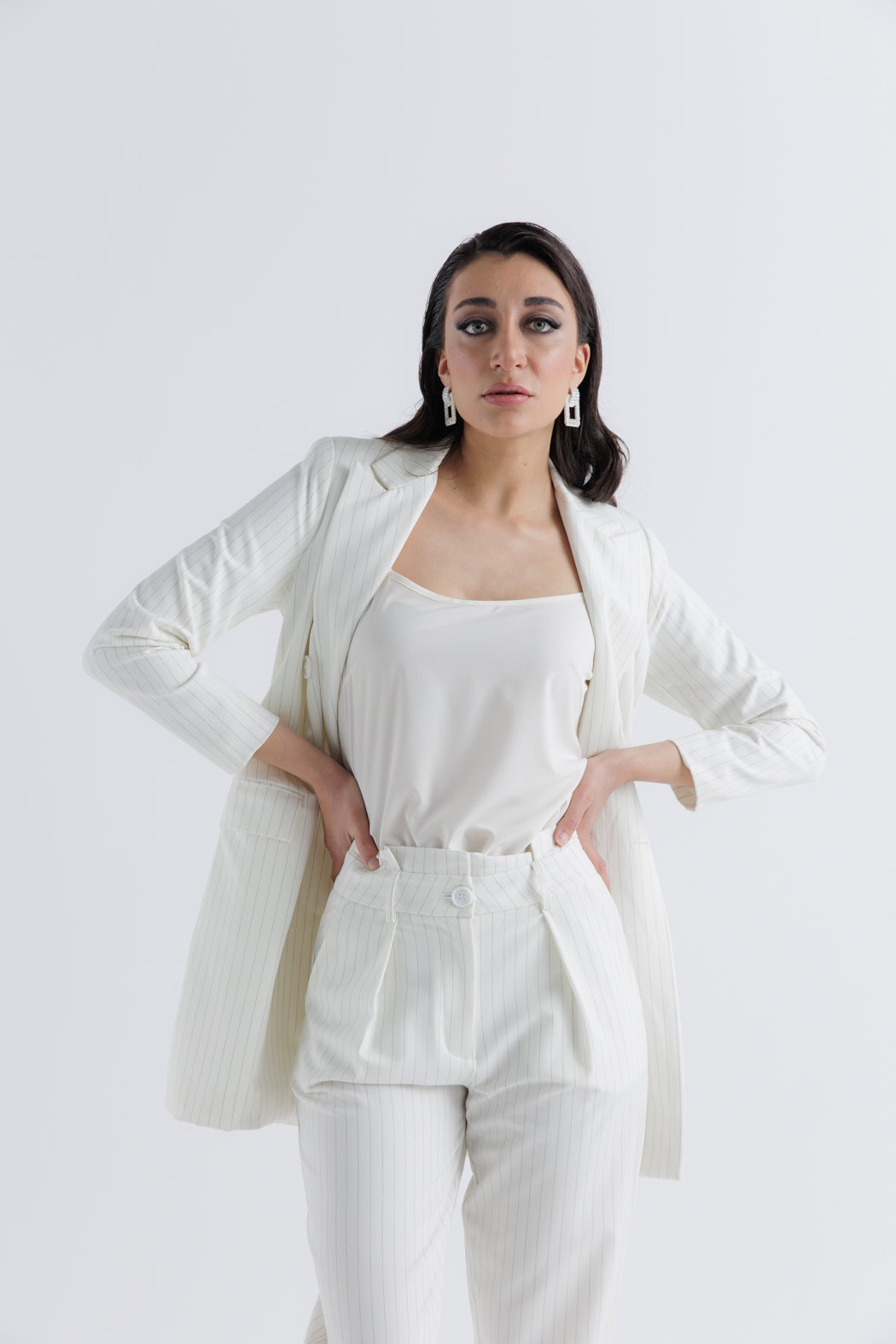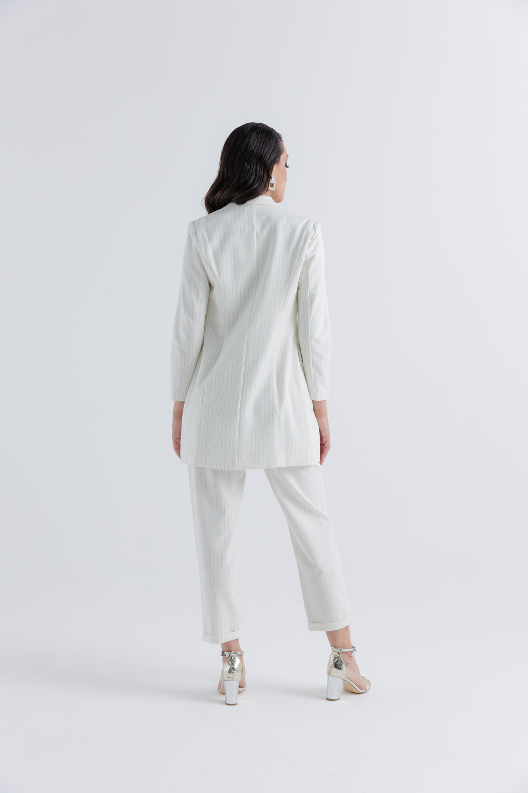 Upgrade your wardrobe with this elegant pinstripe double-breasted blazer, designed for a sophisticated and polished look. Made from a premium blend of polyester and rayon, this blazer offers a structured yet comfortable fit. The subtle pinstripe detailing enhances its timeless appeal, making it perfect for both formal and smart-casual styling.