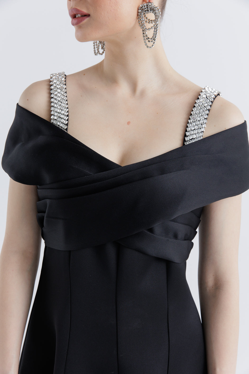 Luxe Off-Shoulder Gown with Dazzling Embellished Straps