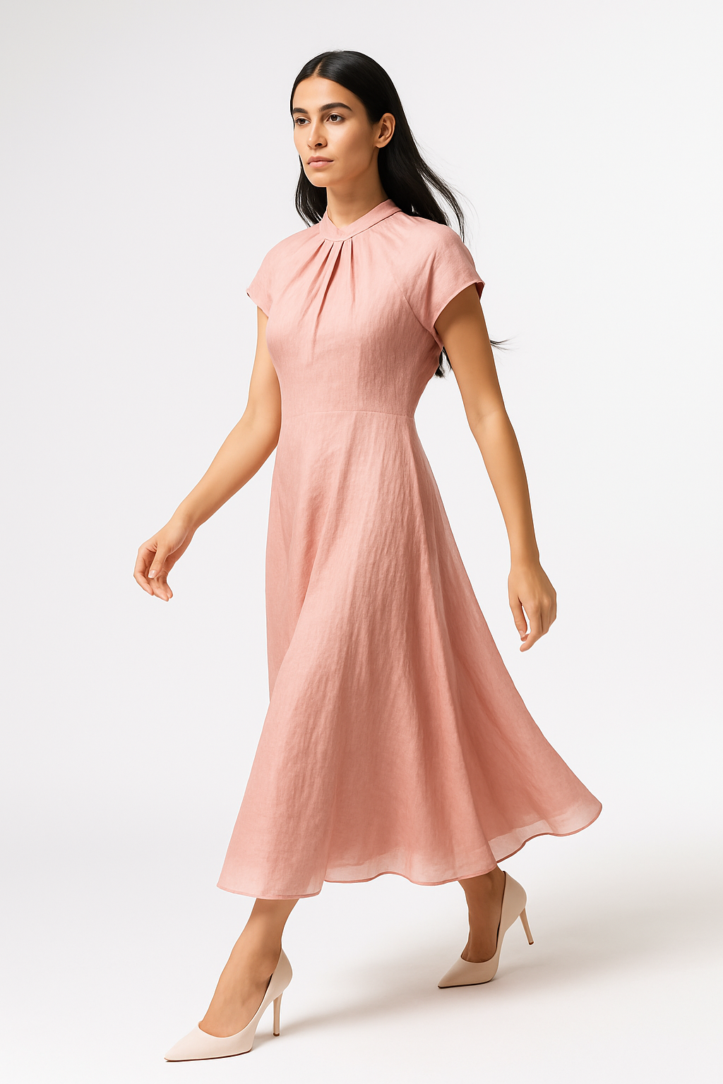 Gathered Neck Midi Dress