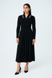Elevate your winter wardrobe with this refined long-sleeve dress crafted from soft cashmere-feel fabric. Designed with a flattering V-neckline, elegant collar finish, and a beautifully pleated skirt, this dress offers a perfect balance of sophistication, comfort, and timeless feminine style.