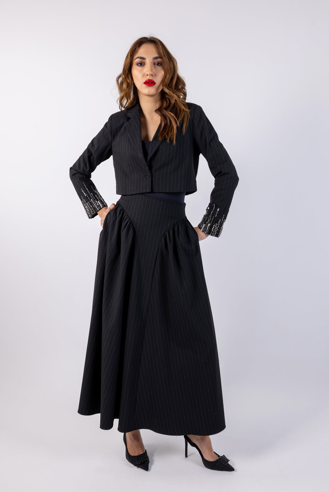 Elevate your wardrobe with our sophisticatedly designed blazer. Tailored for a sleek look, this blazer features a crop design and a fitted silhouette, making it ideal for both business meetings and formal events.