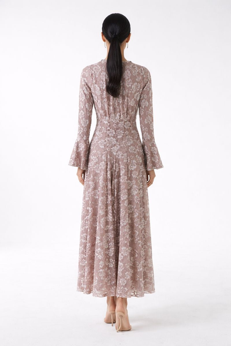 This elegant lace maxi dress from our Winter Collection is designed to deliver timeless sophistication with a refined, feminine silhouette. Crafted from delicate lace fabric and finished with a smooth inner lining for comfortable coverage, it features a fitted bodice that flows into a graceful full-length skirt—perfect for winter occasions and evening events.