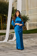 Designed for refined Ramadan and Eid dressing, this elegant maxi dress features a clean bateau neckline and a softly draped silhouette that flatters the body with understated sophistication. The gathered waist detail creates graceful movement while enhancing the natural shape, flowing seamlessly into a fluid full-length skirt. Crafted from a smooth satin-finish fabric, it offers a luminous sheen and a soft, luxurious handfeel. Long sleeves are finished with delicate handcrafted embellishment at the cuffs, adding a subtle artisanal touch without overpowering the design. A concealed side zipper and a clean back with minimal detailing ensure a polished, effortless finish throughout.