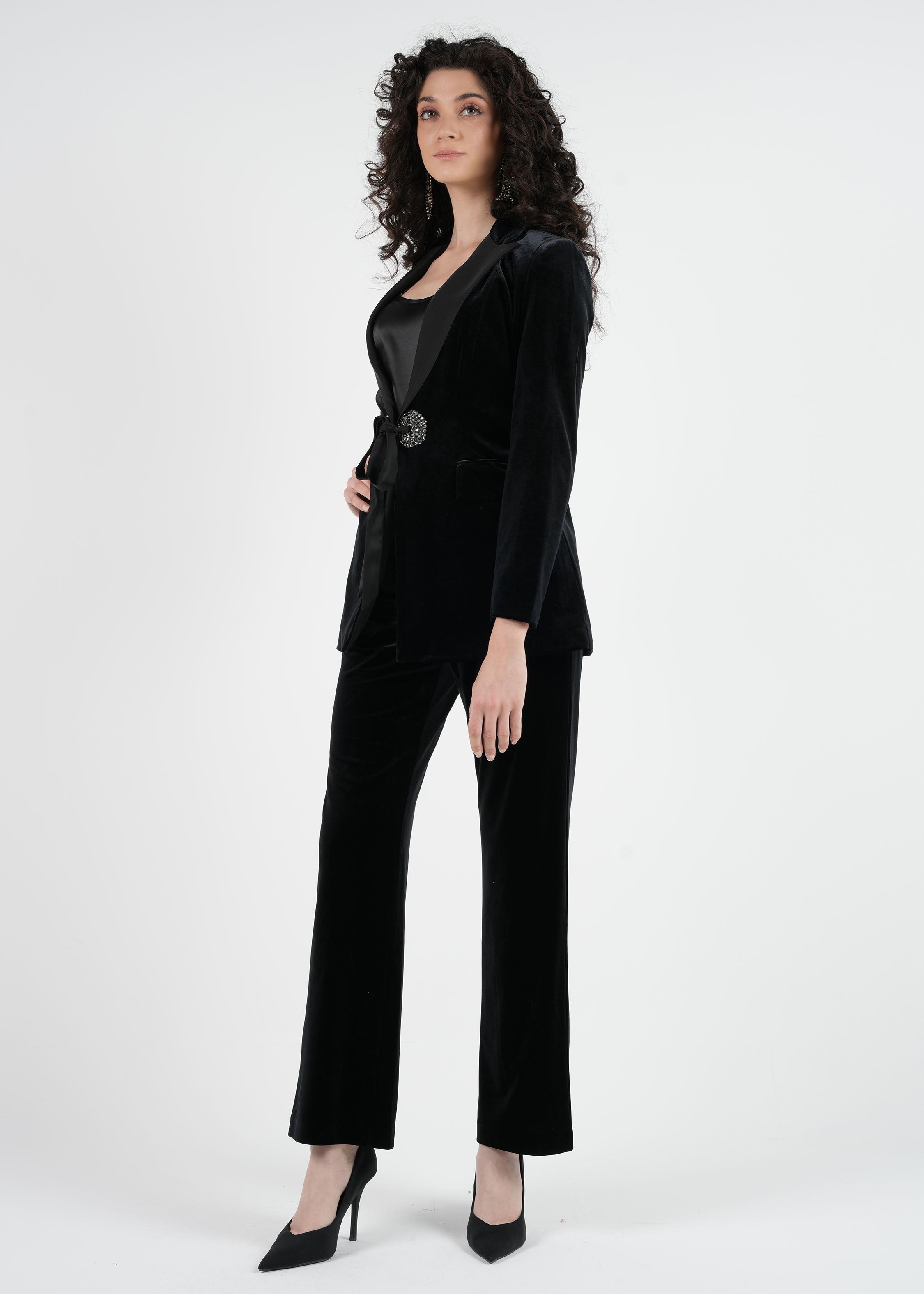 These velvet wide-leg pants combine timeless elegance with contemporary design, making them an essential addition to your wardrobe for any special occasion.