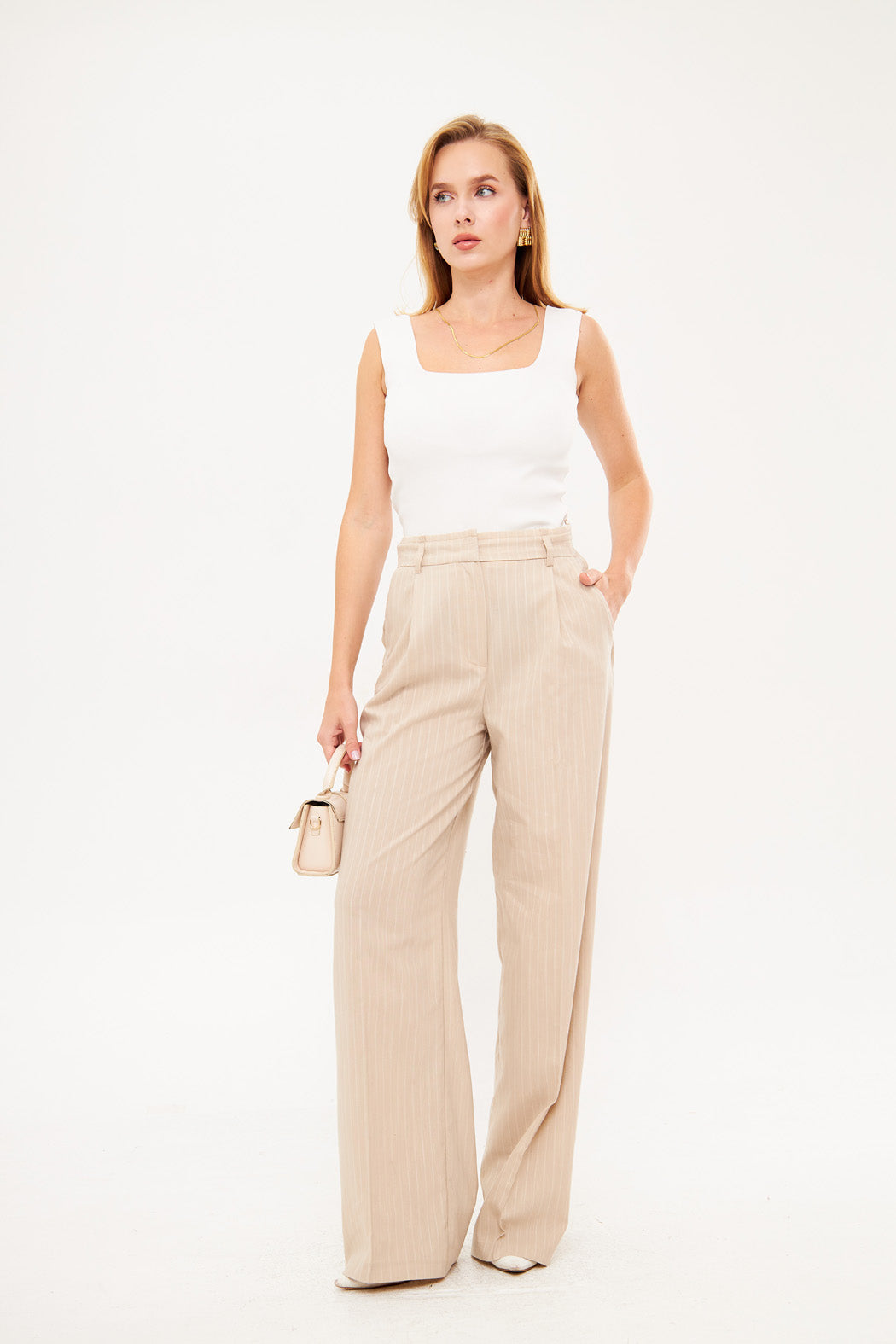 Upgrade your wardrobe with these striking two-toned wide-leg trousers, designed to offer a bold and contemporary flair. The eye catching striped pattern creates a sophisticated visual contrast, making these trousers perfect for both casual and semi-formal occasions. With a relaxed wide-leg cut, they provide comfort and freedom of movement, while the high-rise waist enhances your silhouette for a flattering look.