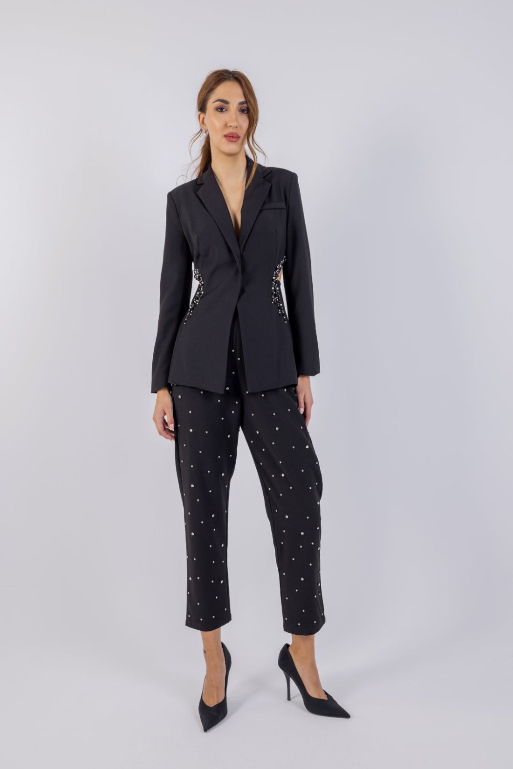Elevate your formal wardrobe with our Studded Slim Fit Formal Trousers. Featuring a tailored silhouette and subtle studded detailing, these trousers combine sophistication with comfort. Crafted from high-quality fabric, they are perfect for both the office and evening events. Pair them with a crisp shirt and blazer for a confident, polished look.