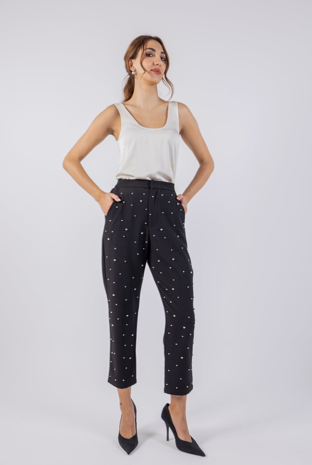 Studded Slim Fit Formal Trousers