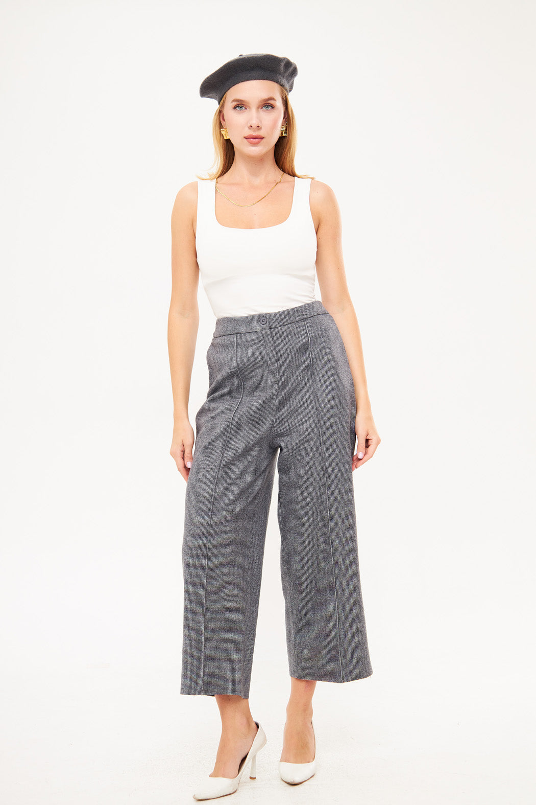 With a wide-leg cut that offers freedom of movement, these culottes create a flattering, relaxed fit that pairs effortlessly with both casual and dressier tops. Versatile and chic, they are a must-have staple for any wardrobe.