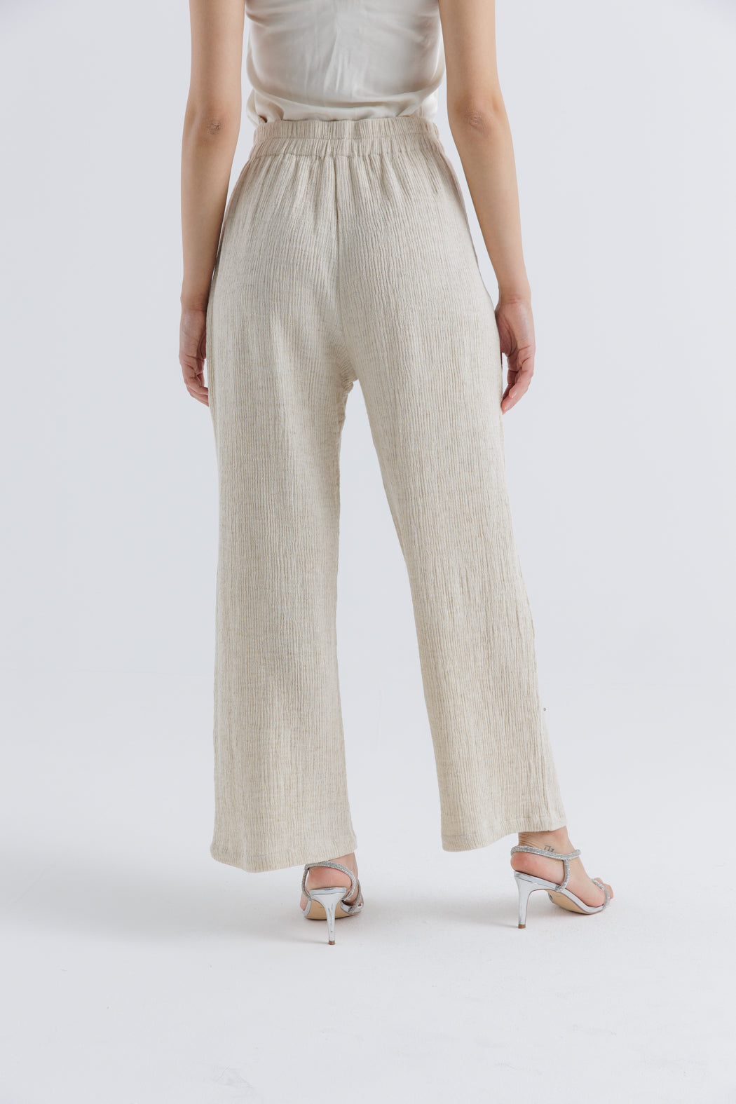 • Design Details: High-waist fit with front pleats, wide-leg cut, side pockets for convenience, and subtle embellishments for a sophisticated touch.