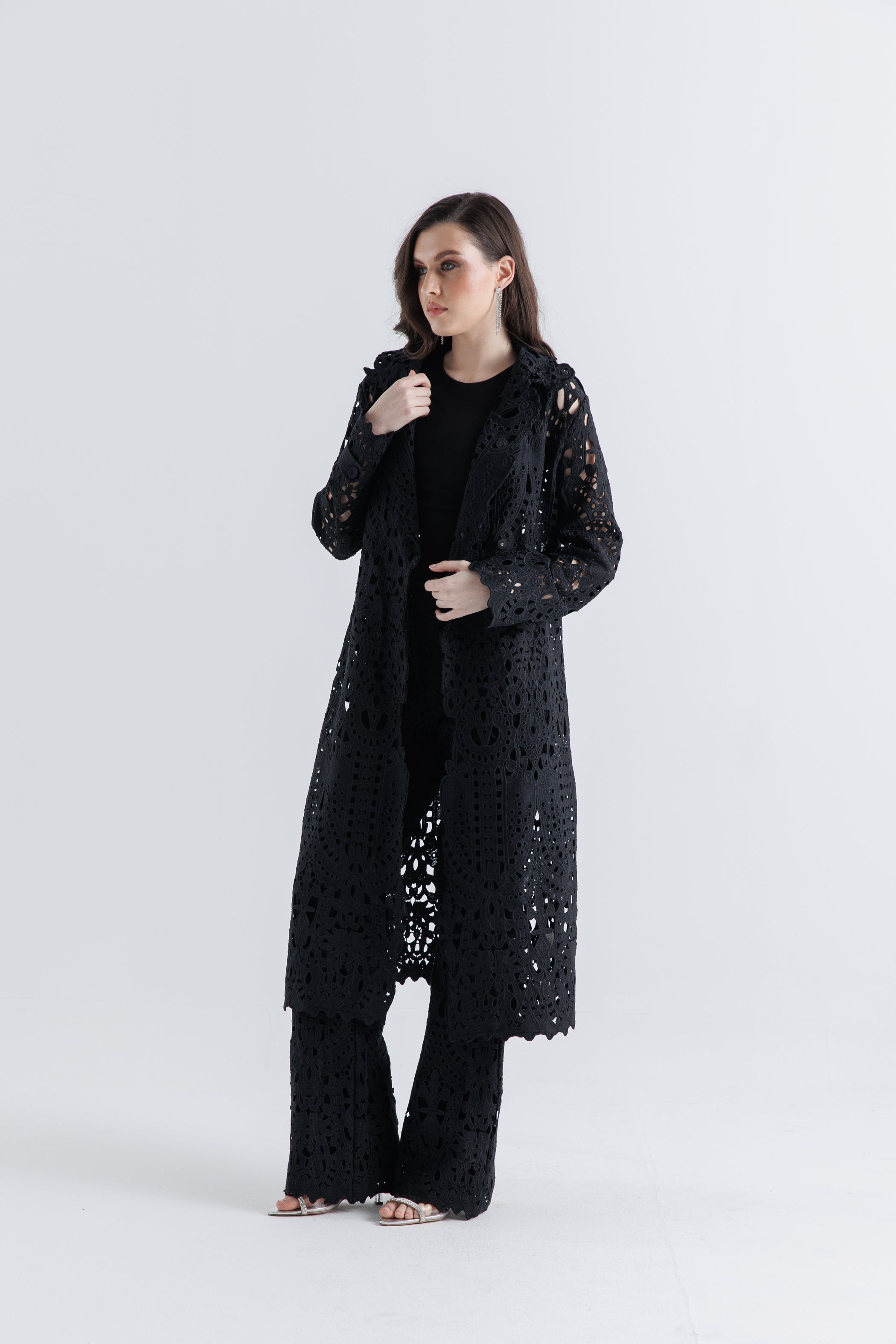 Description:Refined and effortlessly stylish, these wide-leg pants are crafted from intricate laser-cut lace fabric, offering a fresh,...