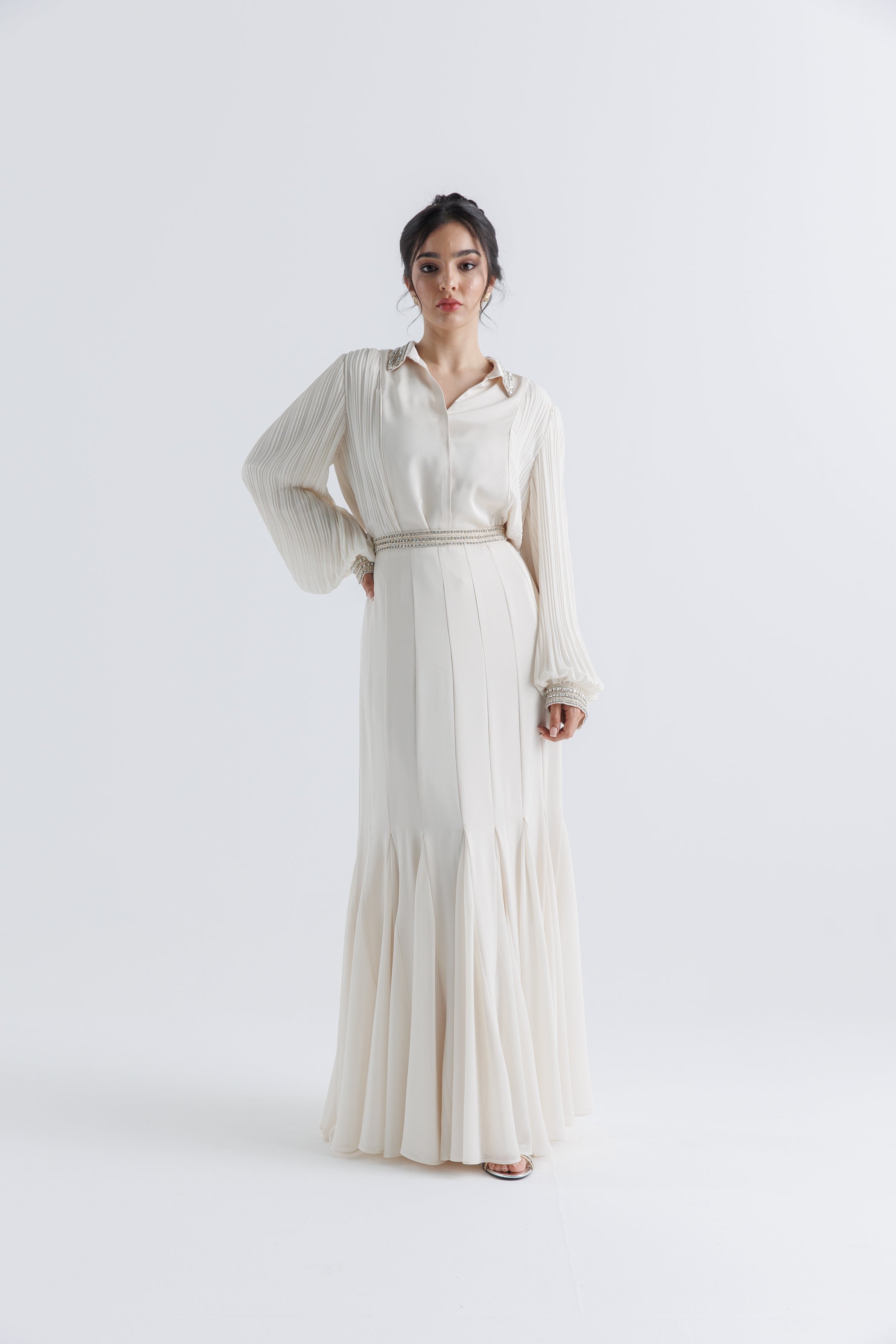 ✔ Design: Features pleated long sleeves for a flowing, graceful silhouette.
