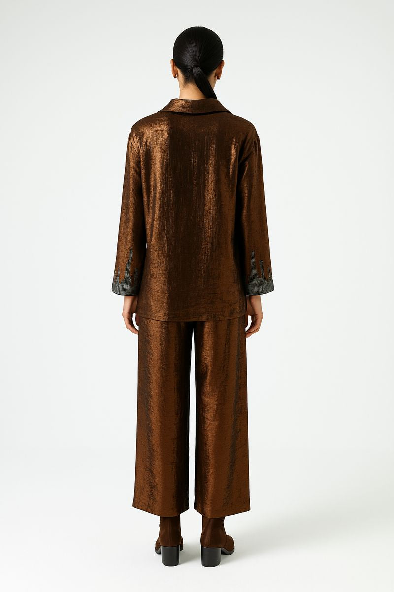 This Metallic Finish Relaxed Shirt is designed to bring understated luxury to Ramadan gatherings and Eid celebrations. Crafted with a fluid silhouette and a subtle metallic sheen, it offers a refined balance between elegance and comfort. The relaxed fit drapes effortlessly, making it ideal for elevated daywear or evening occasions during the festive season.