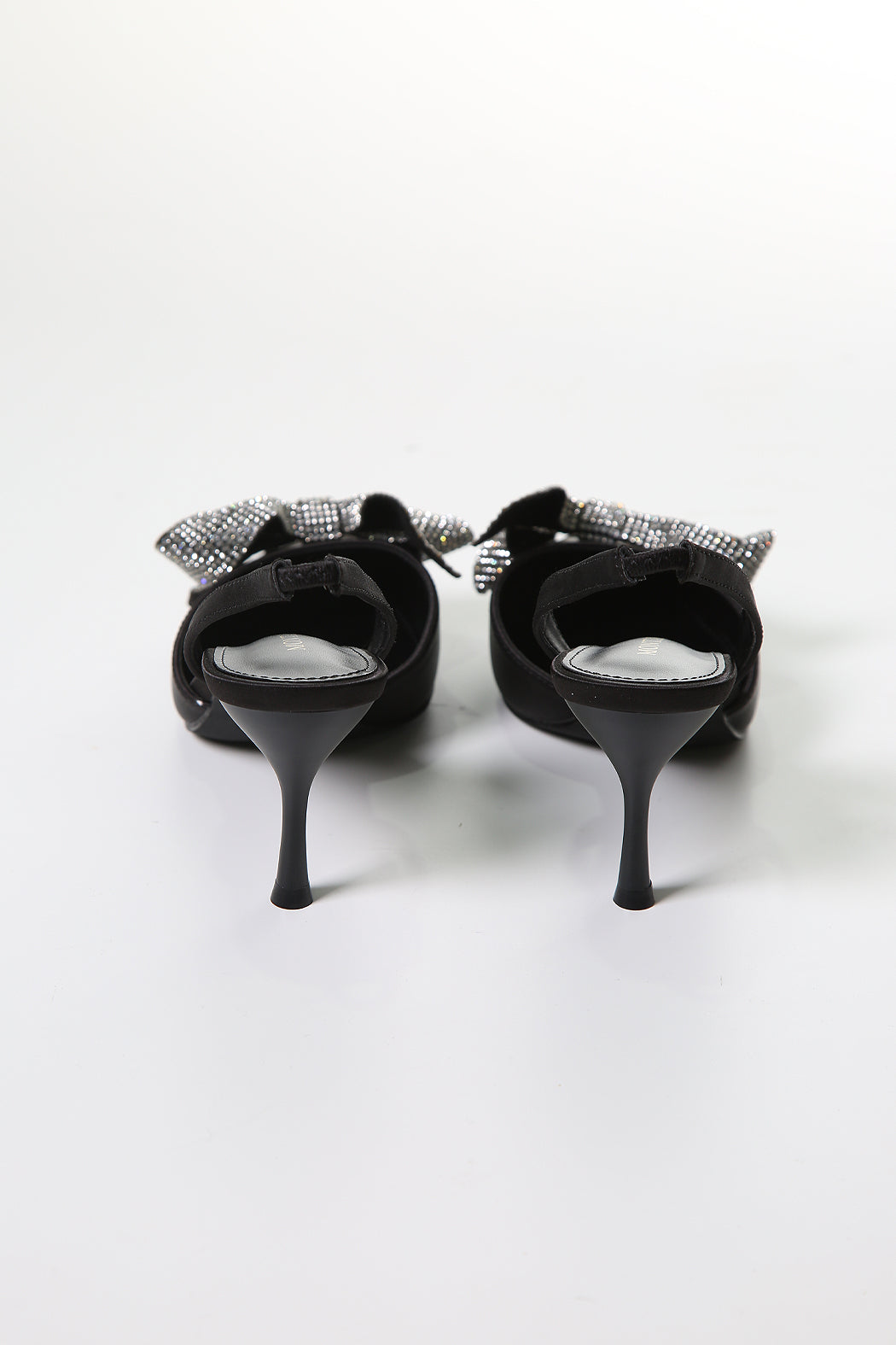 Crystal Bow Satin Slingback Heels – Elegant Glamour