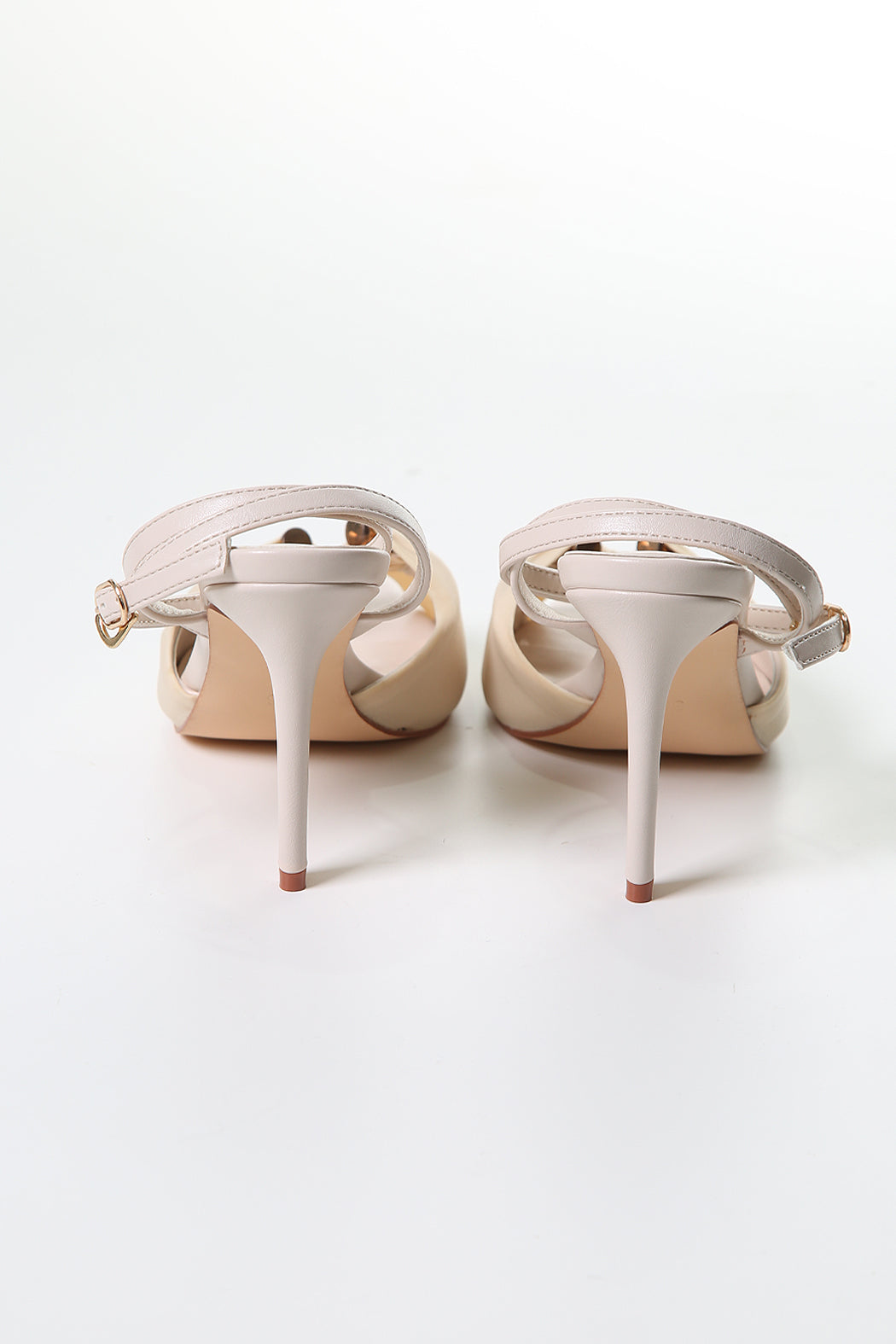 Add a statement touch to your wardrobe with these sophisticated open-toe heels from Montania. Designed with a ruched satin front, gracefully gathered into a polished metal ring, this pair blends elegance with modern flair. The double ankle straps with a gold-tone buckle provide a secure and stylish fit, while the high stiletto heel and square toe enhance your silhouette. Available in classic black, bold red, and soft beige, these heels are perfect for evening events, formal occasions, or stylish nights out.