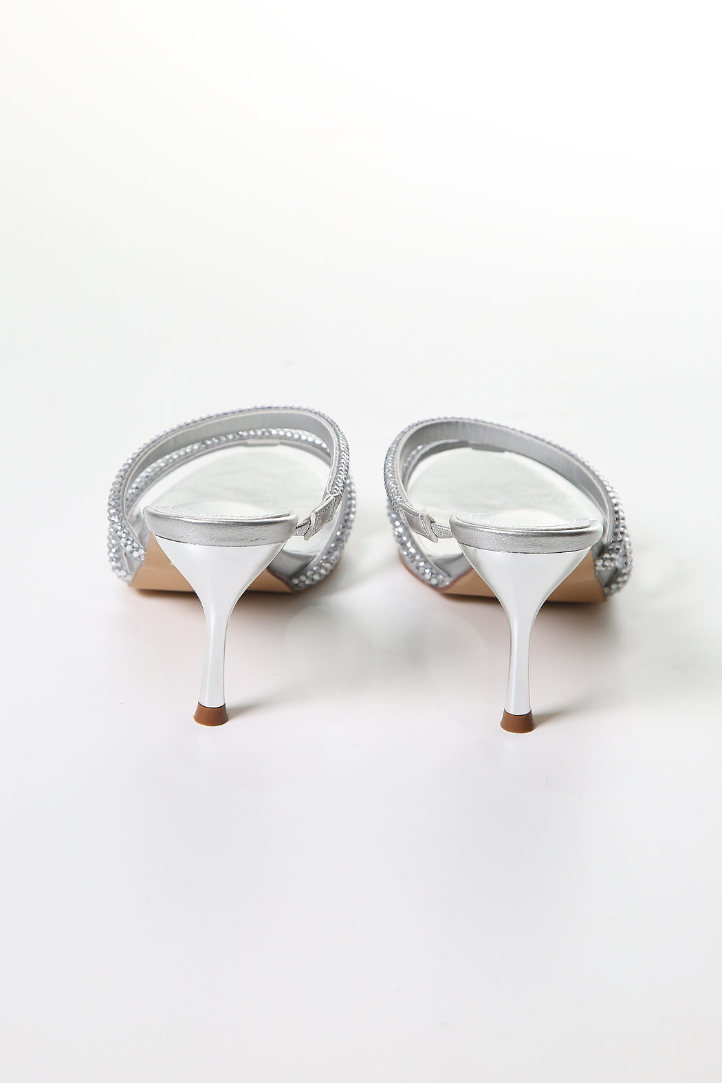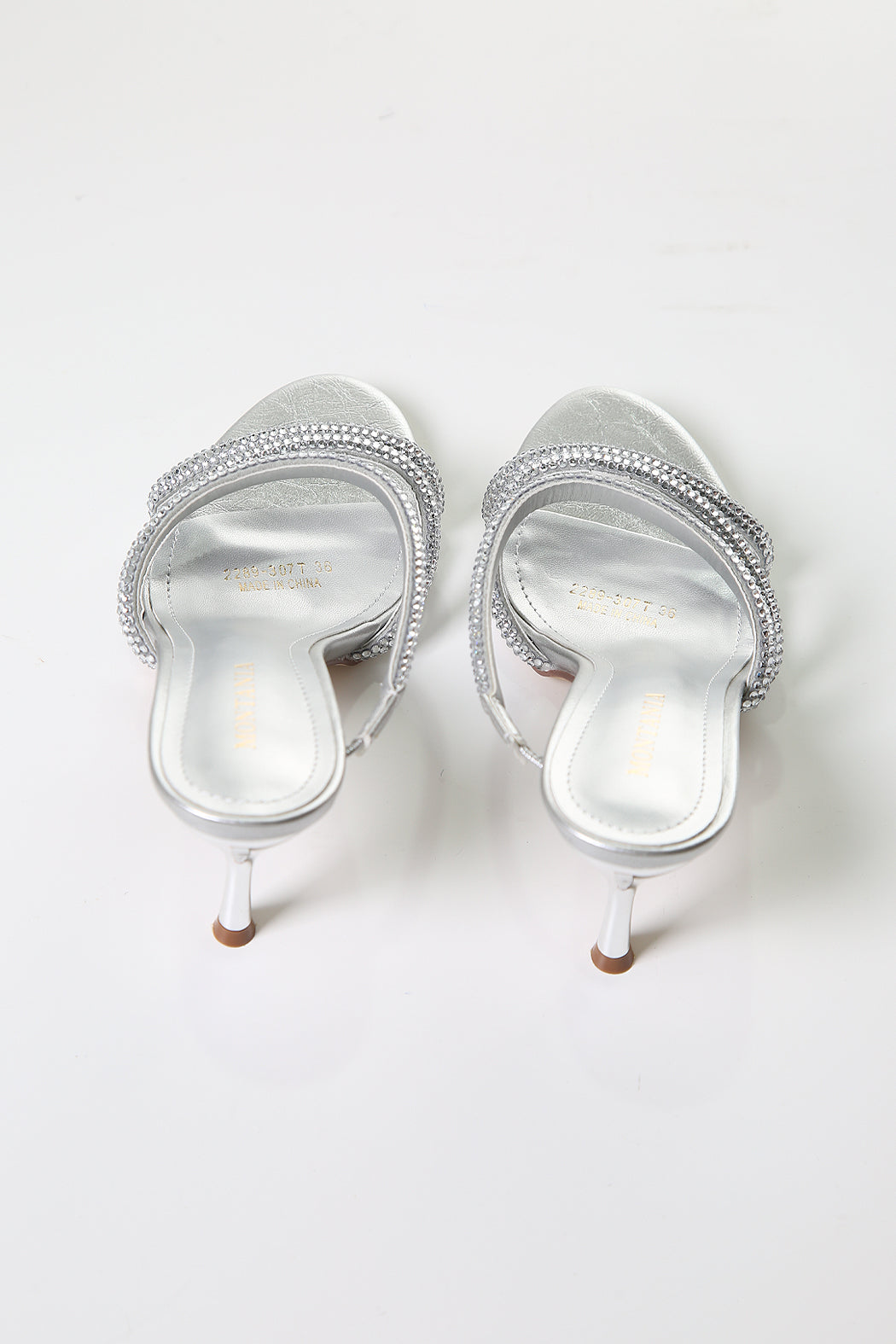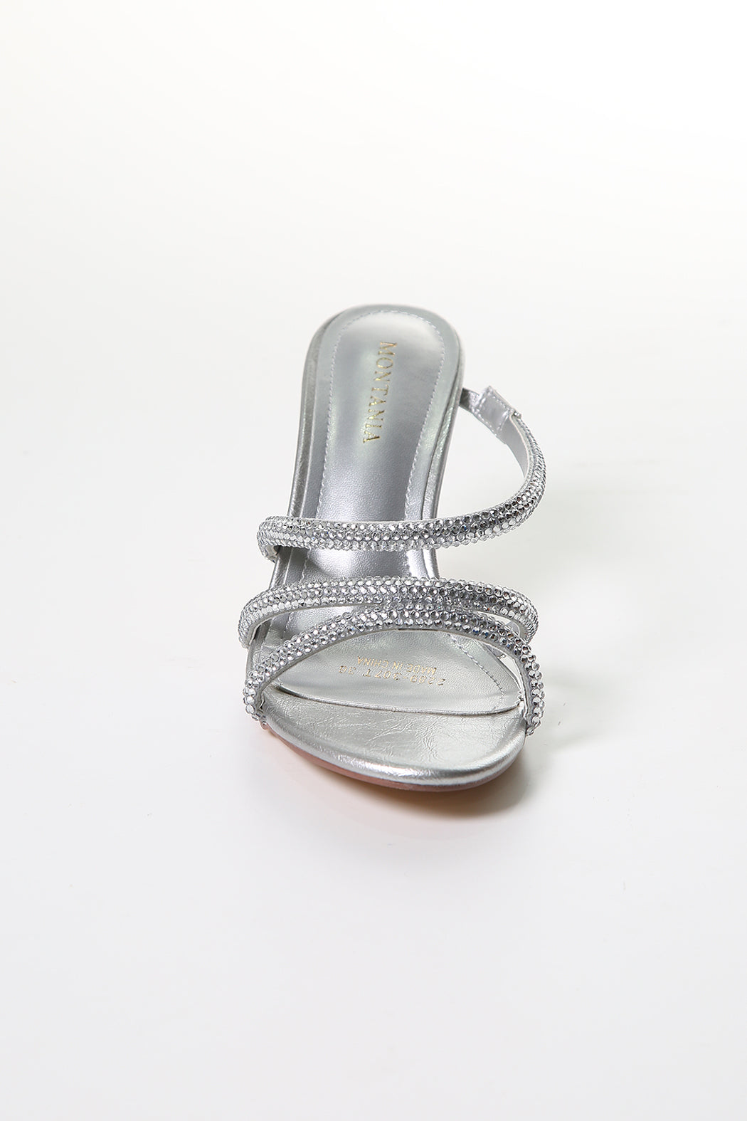 Step into elegance with these stunning MONTANIA evening sandals. Designed to dazzle, they feature three slim crystal-embellished straps across the front, offering a glamorous sparkle with every step. The sleek metallic stiletto heel adds height and poise, while the open-toe silhouette enhances femininity. Crafted from high-quality materials, these sandals provide both style and comfort—perfect for weddings, formal events, and special nights out.