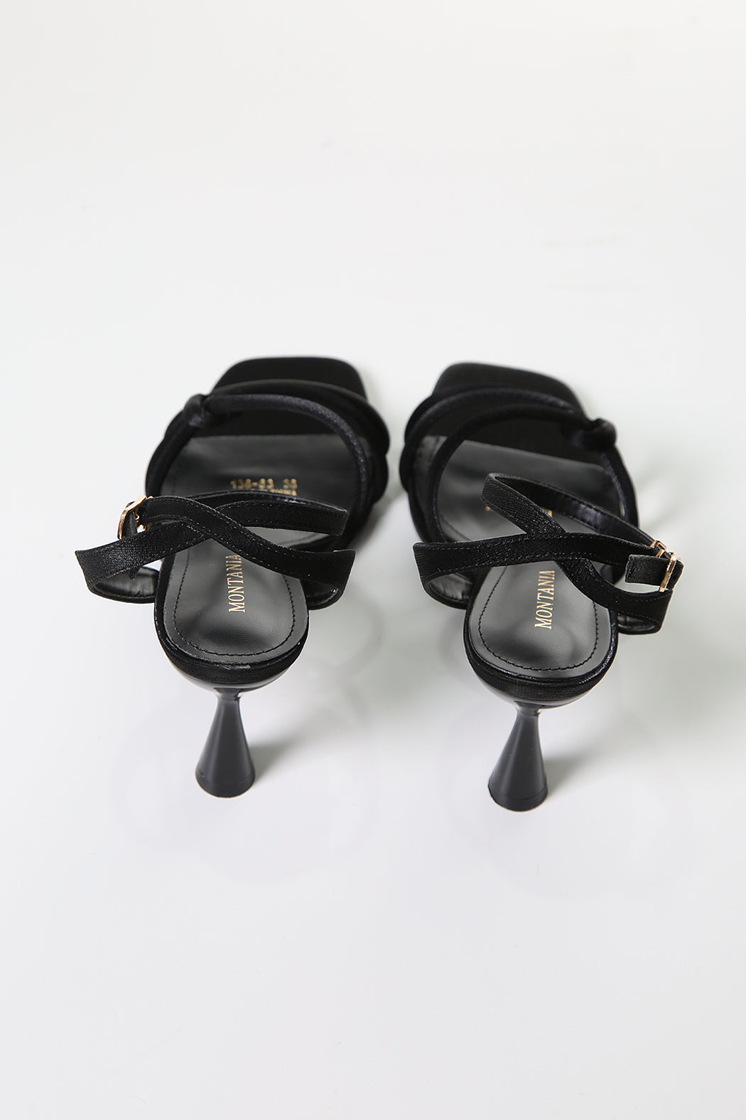 Step into sophistication with these beautifully crafted twist strap heeled sandals by Montania. Designed with a minimalist...