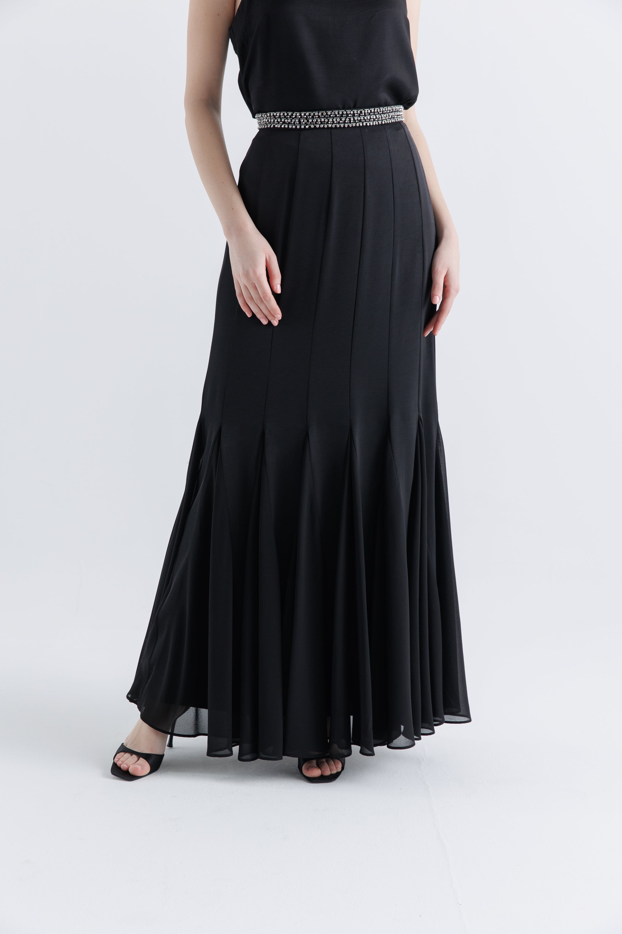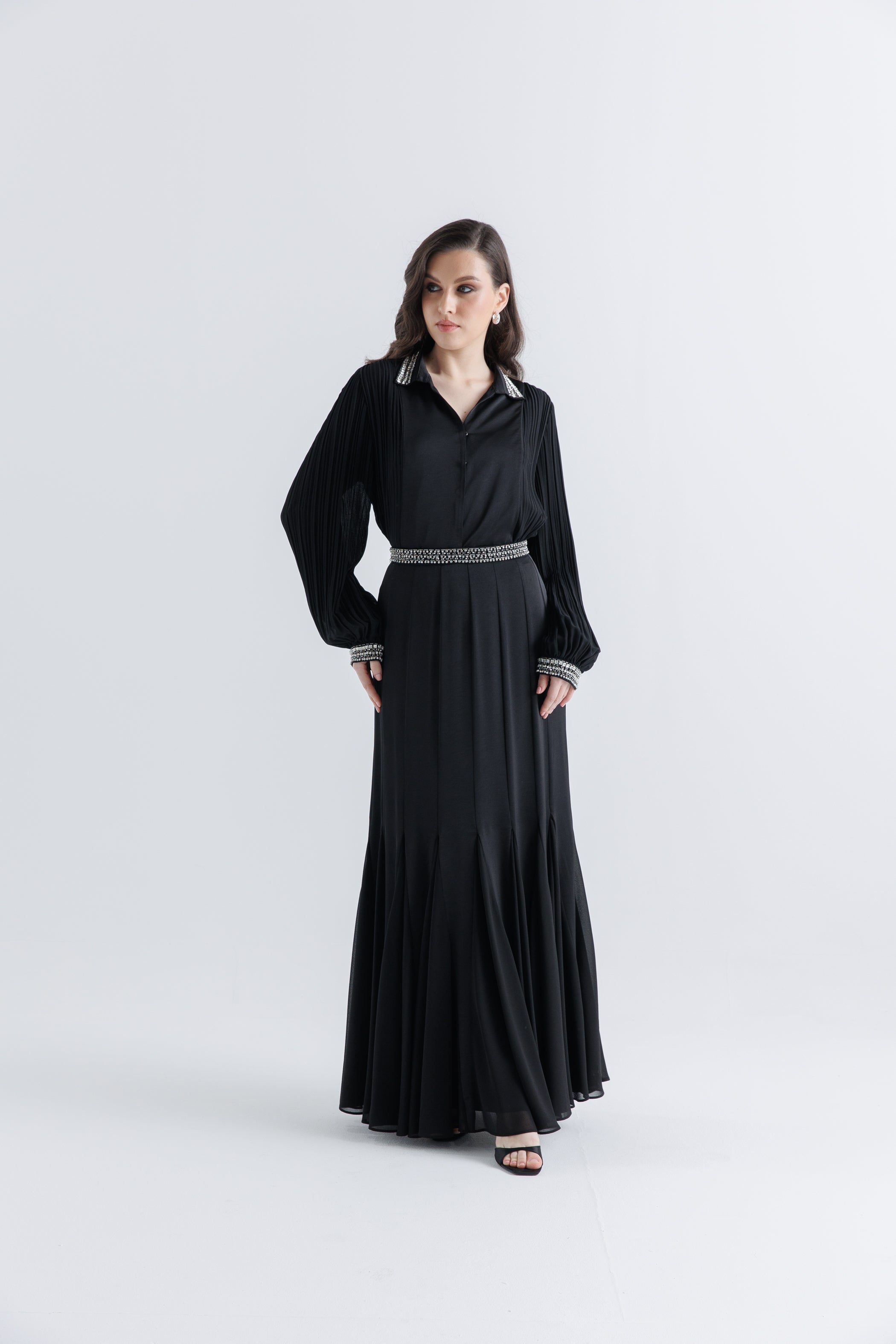 Enhance your festive wardrobe with this stunning pleated maxi skirt, crafted for elegance and movement. The beautifully structured pleats flow effortlessly, while the embellished waistline adds a touch of luxury—perfect for Ramadan and Eid gatherings.