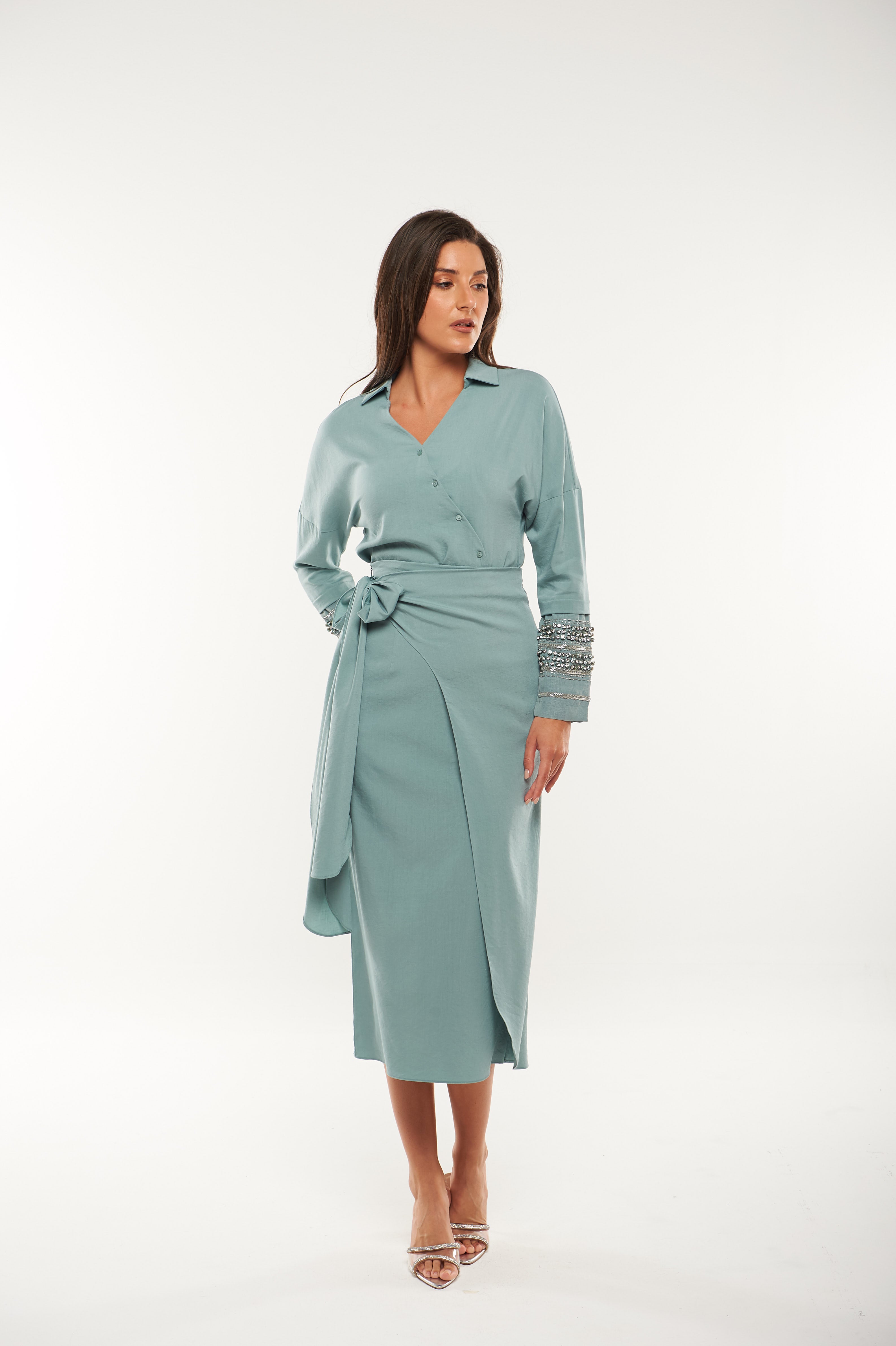 Step into effortless elegance with this chic wrap-style midi skirt, designed with a flattering silhouette and graceful movement. Featuring a soft drape and a self-tie detail at the waist, this skirt combines sophistication with comfort—perfect for both casual days and elevated evenings.