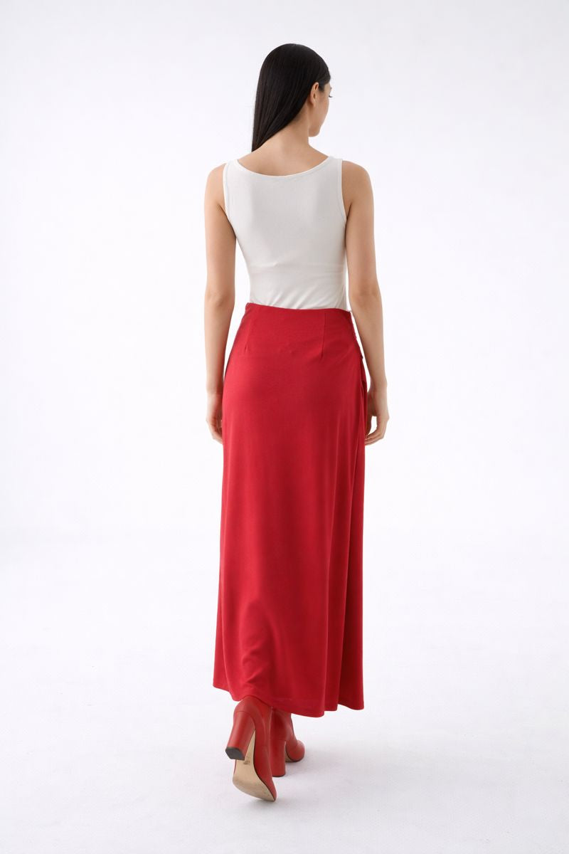 Crafted with a smooth, flowing finish, the skirt falls to a graceful maxi length and is completed with a discreet side zip closure for a clean, tailored look. Perfect for pairing with structured blouses or elegant tops, this piece transitions seamlessly from daytime elegance to evening occasions.